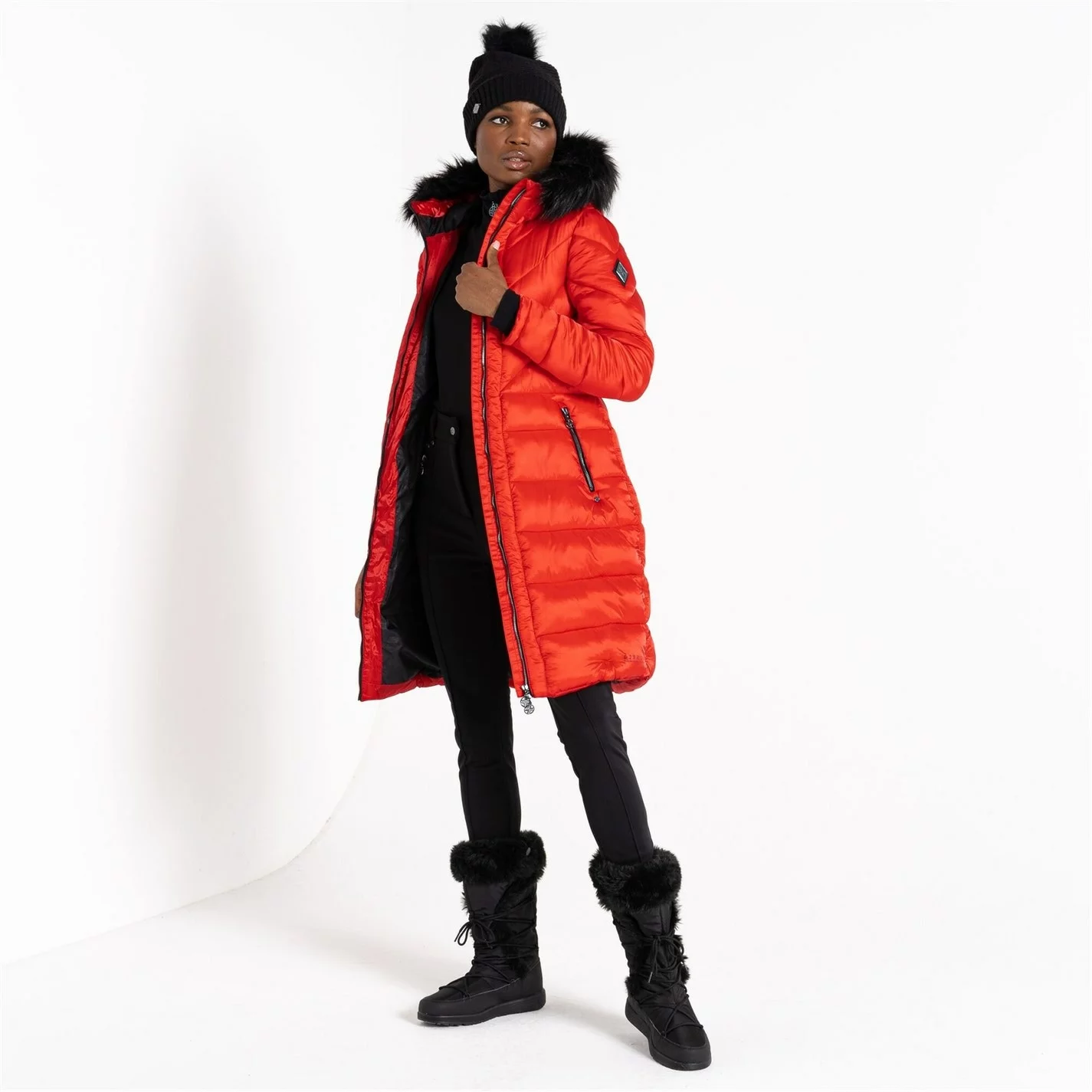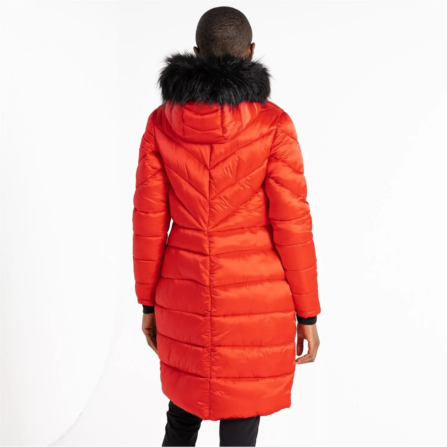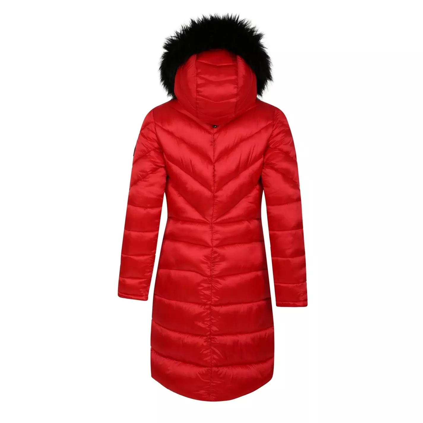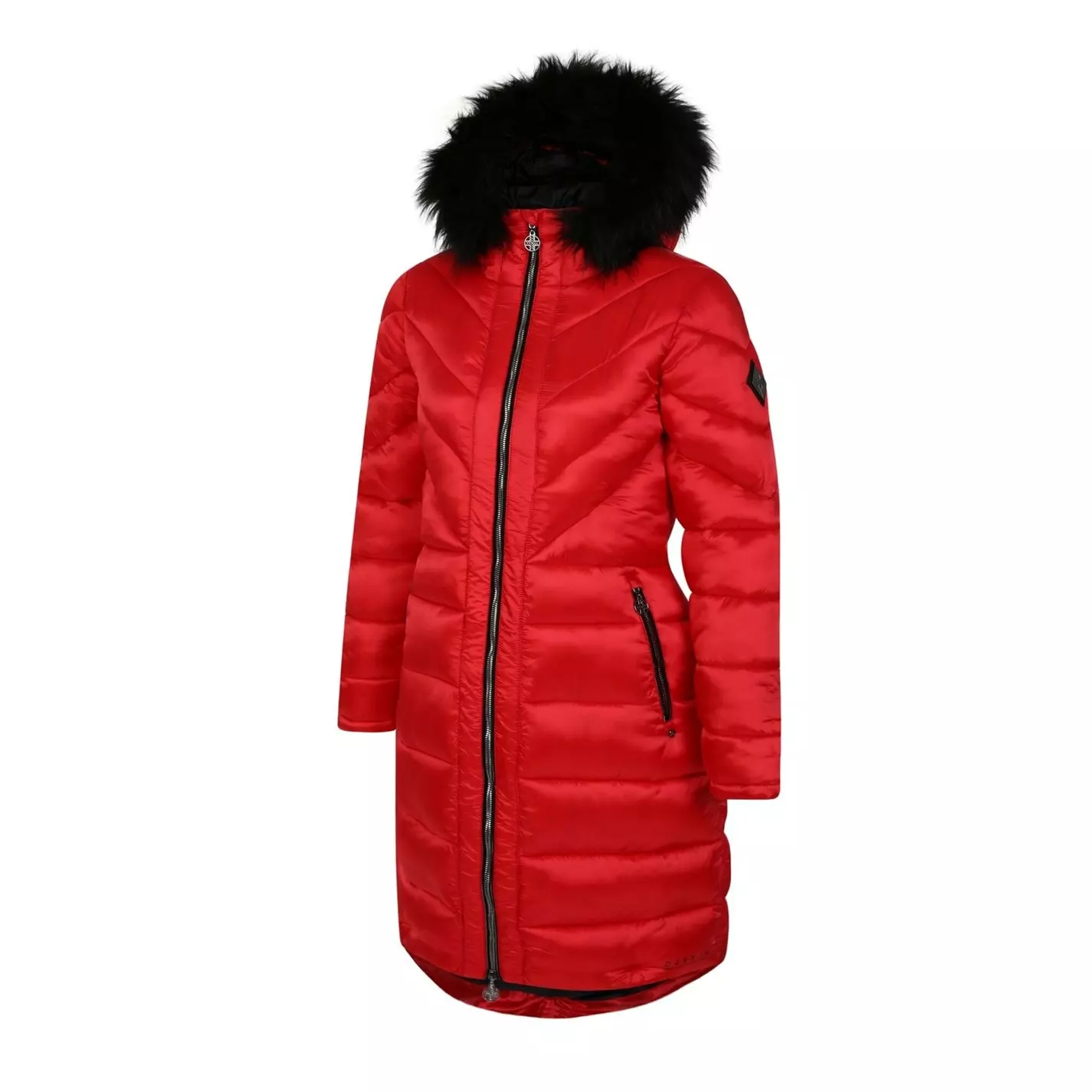 Julien Macdonald Supression Longline Insulated Padded Jacket. A stylish, longline padded jacket made from super lightweight fabric. With recycled high warmth padding to keep the heat in on those chillier days. Finished with metal hardware and an adjustable hood with removable faux fur trim for an added touch of luxe.
