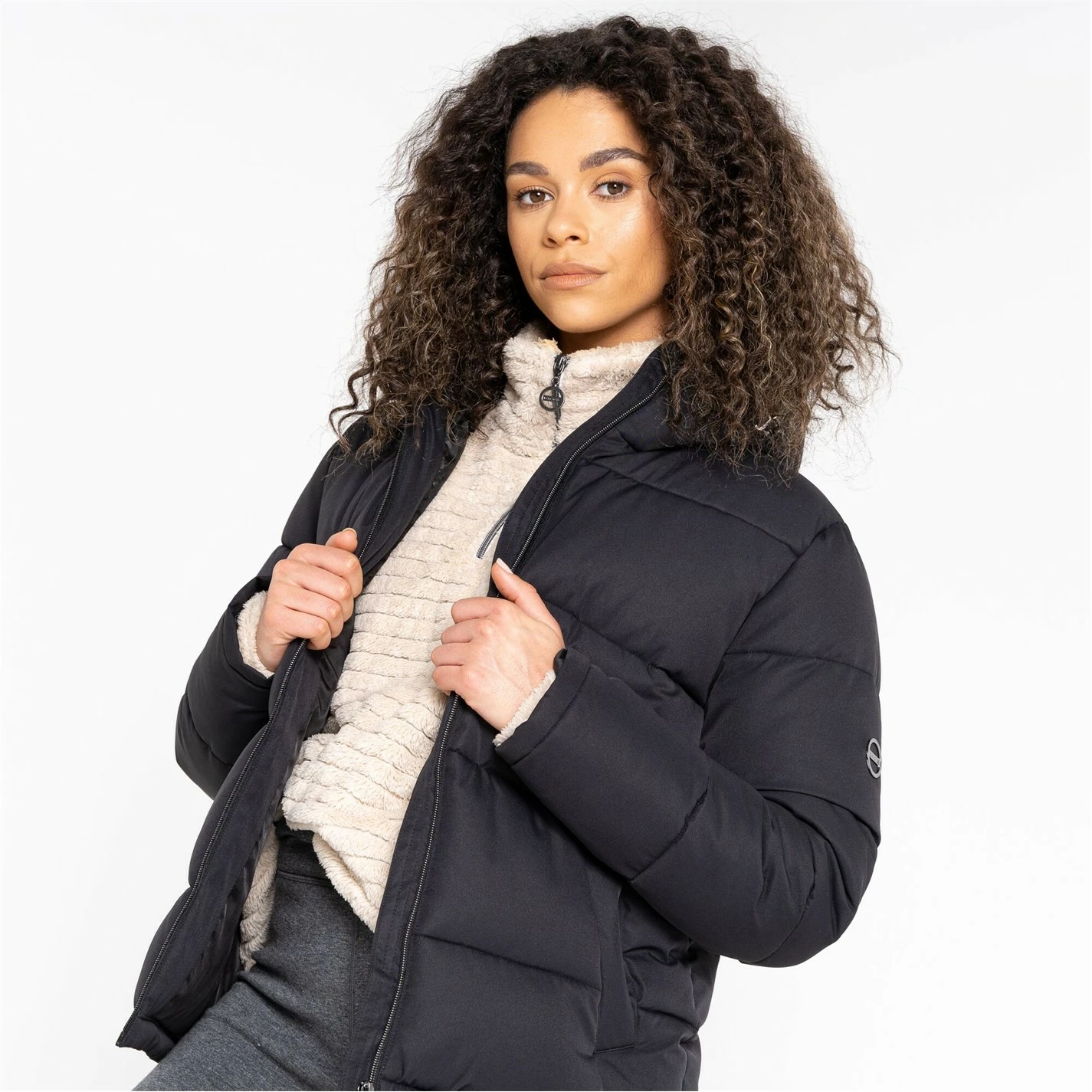 The Luxuriate Jacket. Made from recycled waterproof and breathable ARED 8000 fabric with a water repellent finish to protect you from the elements. With recycled high warmth padding to keep you warm and cosy on chillier days. Function meets fashion with an on-trend silhouette and detachable hood with adjusters. This product recycled 16 plastic bottles.