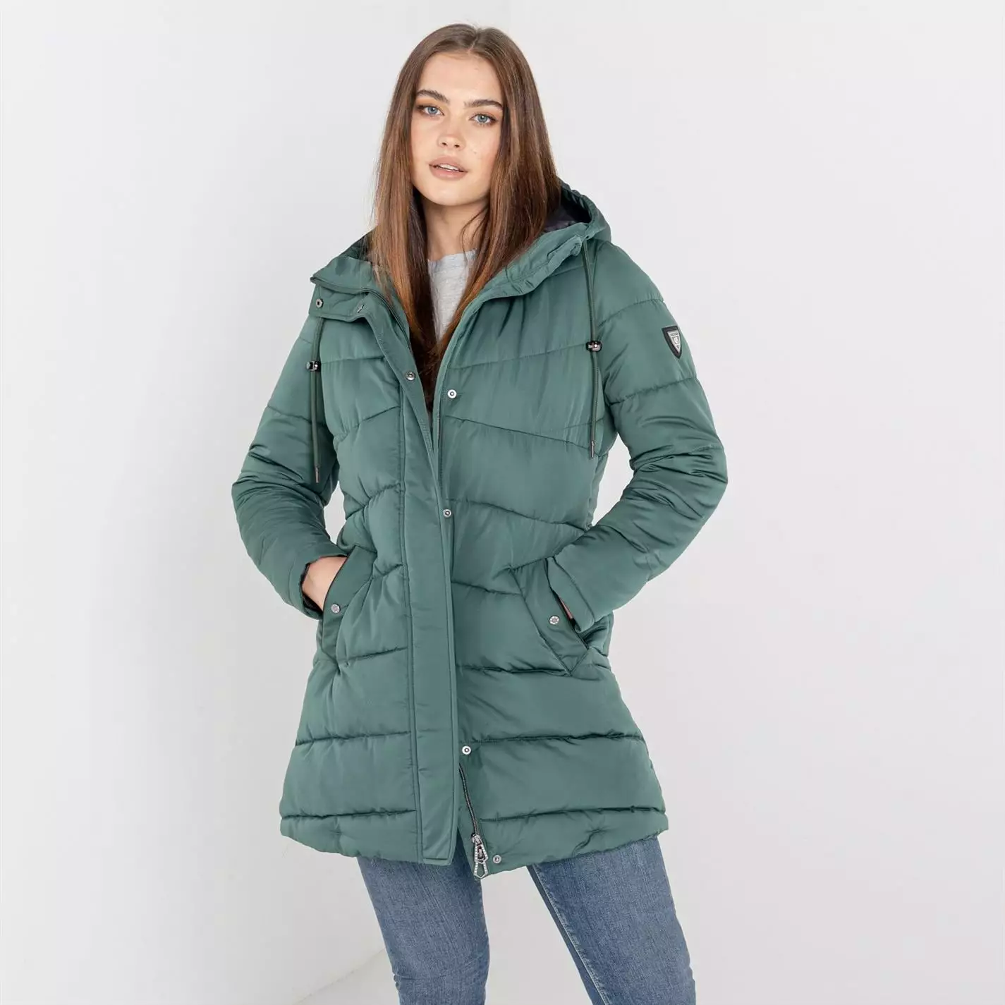 The Reputable Longline Padded Jacket. Made from high-shine polyester twill fabric that’s supremely soft to wear and water repellent. Chevron-quilted with high warmth, low-bulk bulk insulation. Embellished with Swarovski® Crystals. Function meets fashion.