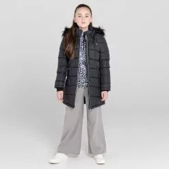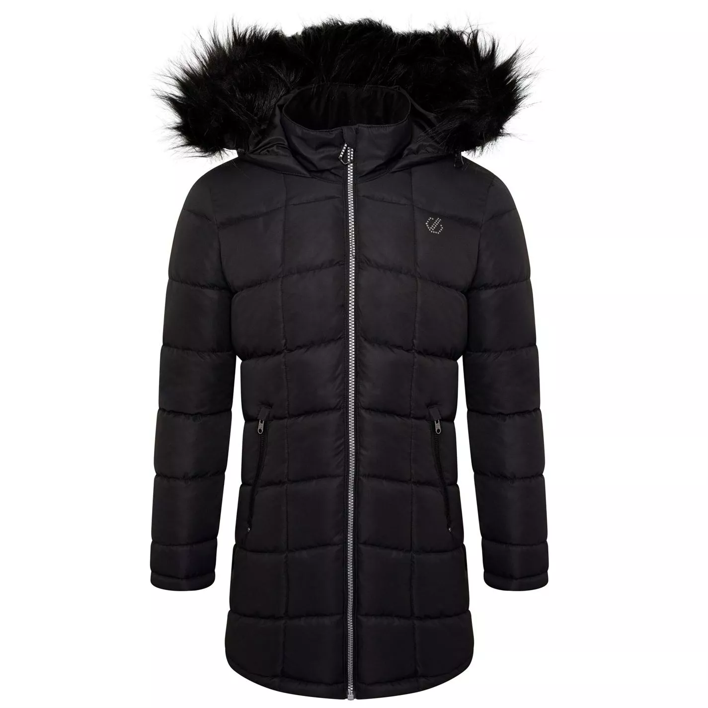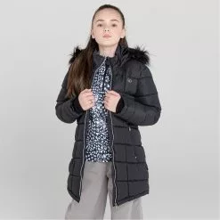 The Girls Striking Waterproof Jacket. With an ARED 8000 waterproof and breathable fabric construction. Taped seams for waterproof protection and high warmth, low-bulk insulation to keep you warm and dry. Embellished with Swarovski crystals and featuring a detachable fur trim to the hood for an added touch of luxe. Ready to perform in style.