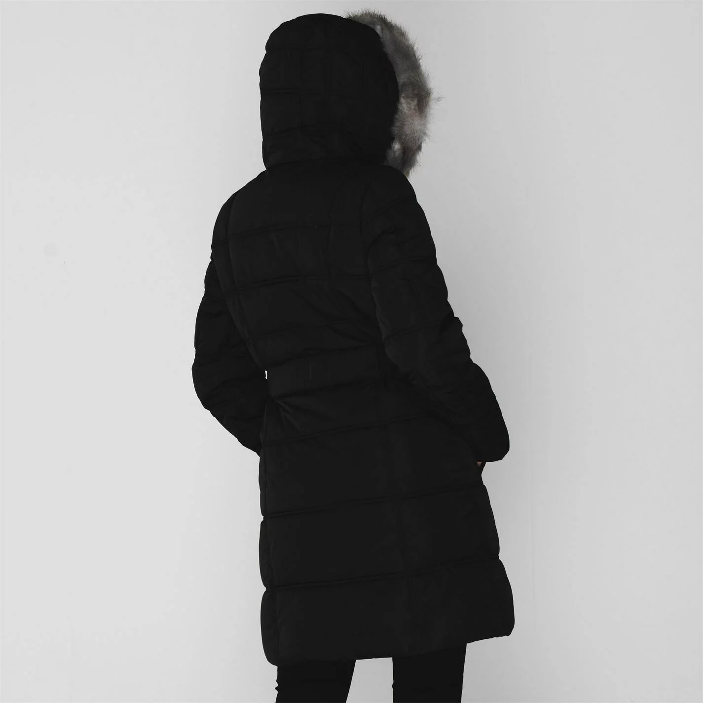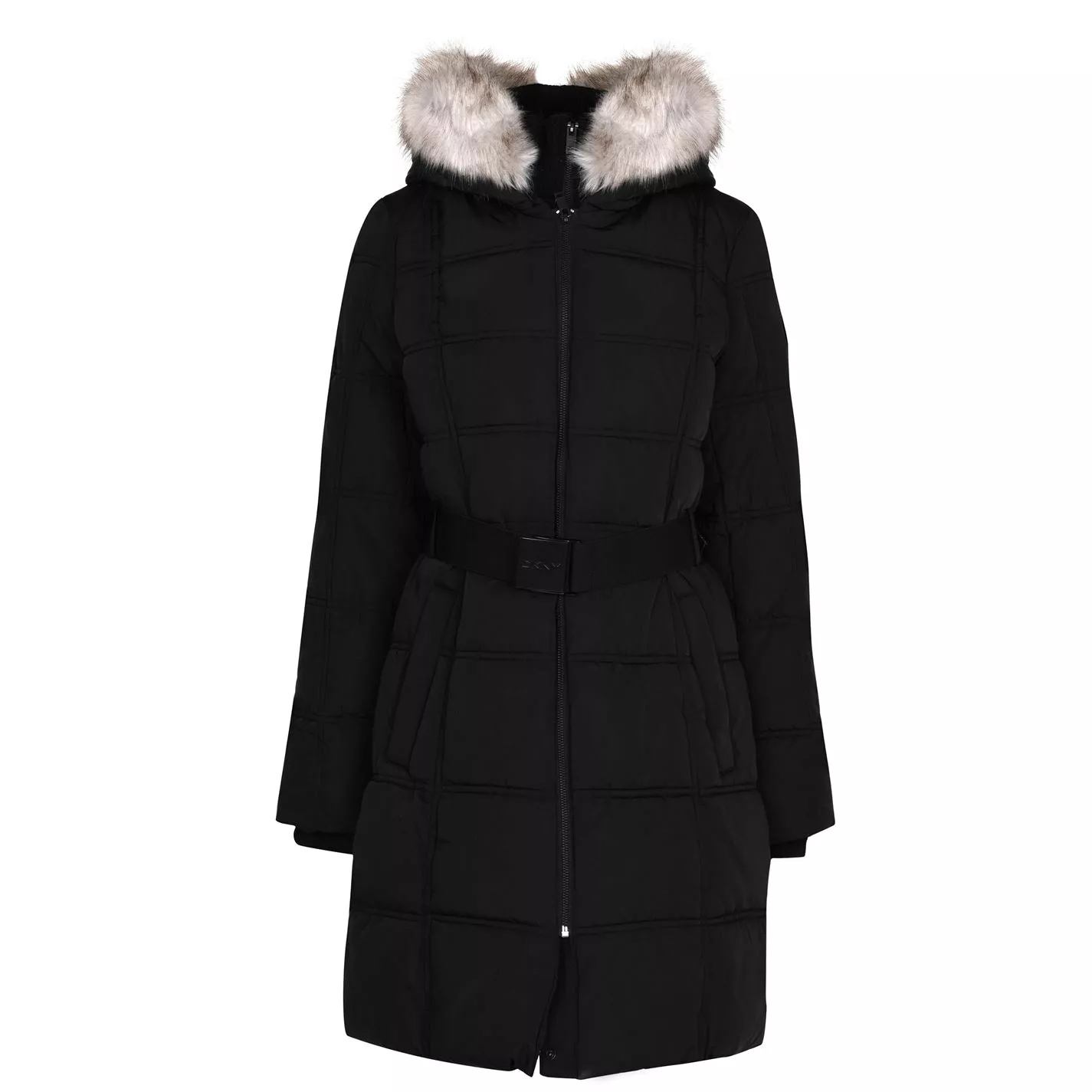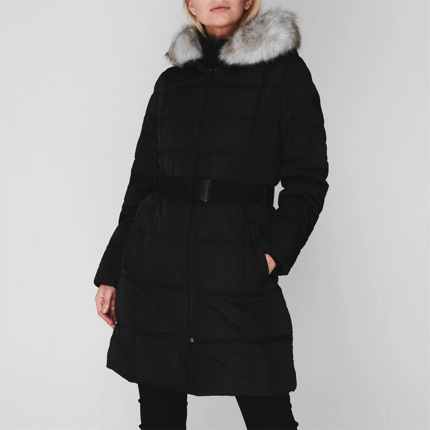 Upgrade your winterwear collection with this DKNY Belted Long Puffer Jacket, an ideal choice to stay fashionable but functional in the colder months. The knee-length coat benefits from a padded design that, along with the faux fur lined hood, inner ribbed cuffs and large knitted ribbed neck, provides ultimate warmth. Additionally, the DKNY-branded belt fastens around the waist to provide the perfect fit and silhouette, while the full zip fastening and snap-button pockets provide further functionality.