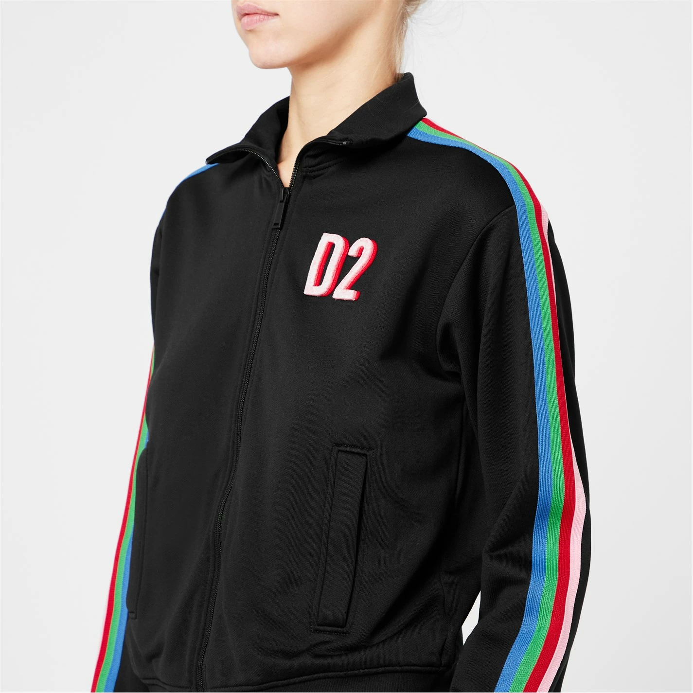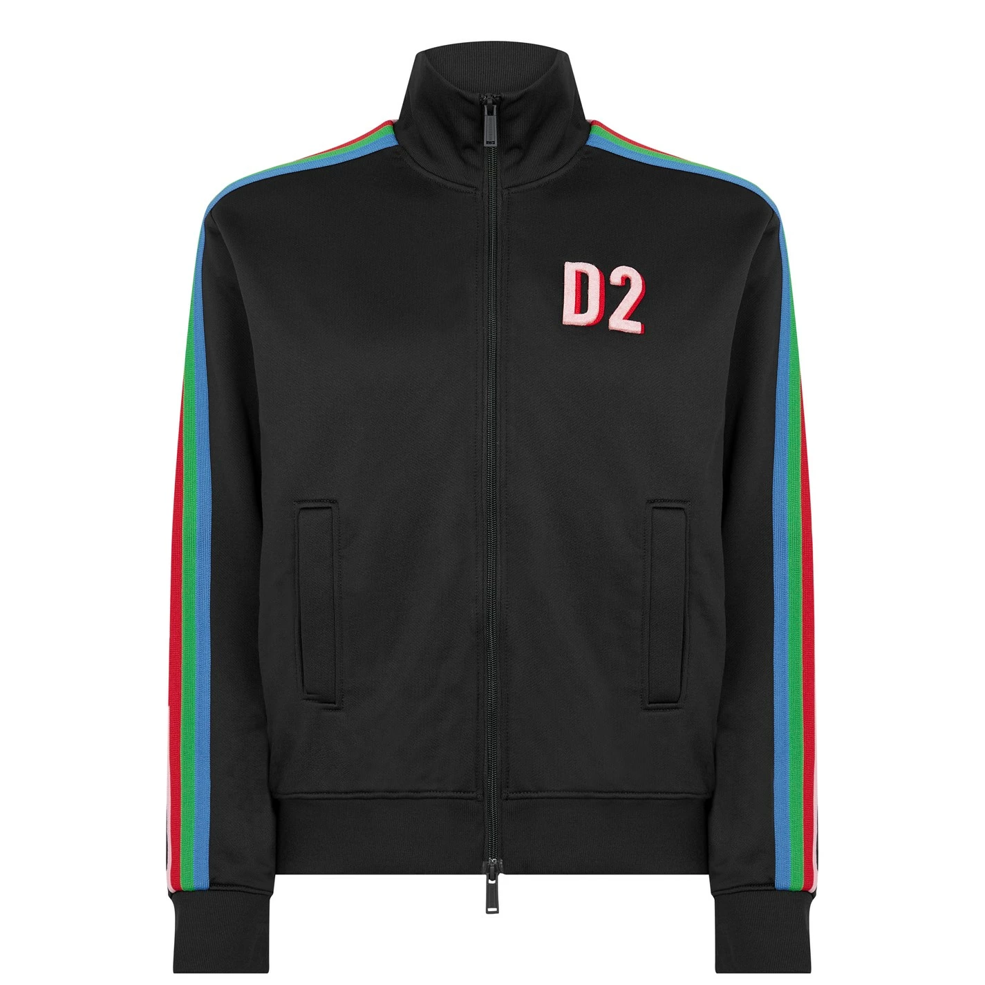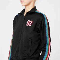 With an athleisure wear aesthetic, the dsquared2 Camping Crew Side Band Jacket has been crafted from a lightweight nylon fabrication cut in a regular fit silhouette for a casual styling. Boasting a staple black colourway, this layering piece is characterised with contrasting multi-coloured striped panels down the length of the sleeves for a bold and eye-catching look. Complete with a stand collar, full zip fastening and side pockets, this jacket is signed off with a stitched D2 patch to the chest for instant brand recognition. Pair yours with the matching joggers and sneakers.