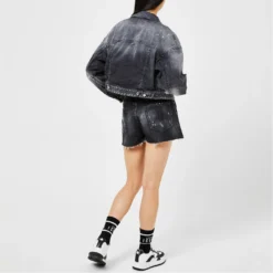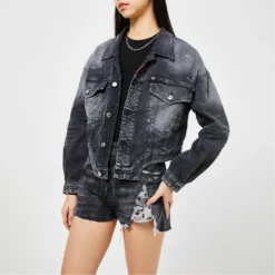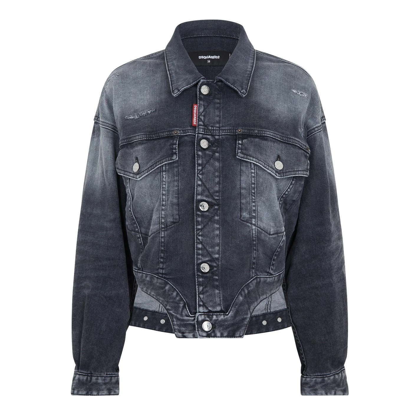 The Cropped Denim Jacket from cult streetwear brand DSquared is the perfect addition to your casual outerwear. Crafted from a durable cotton blend twill, the jacket features a point collar, long sleeves with buttoned cuffs, central button fastenings, chest pockets, silver-toned hardware, an adjustable curved cropped hem. Decorated with a faded dark wash, it design is elevated with distressed detailings and a DSquared2 logo tag to the seam. Main Fabric:92% cotton, 6% elastomultiester, 2% elastane. Machine washable at 30 degrees.