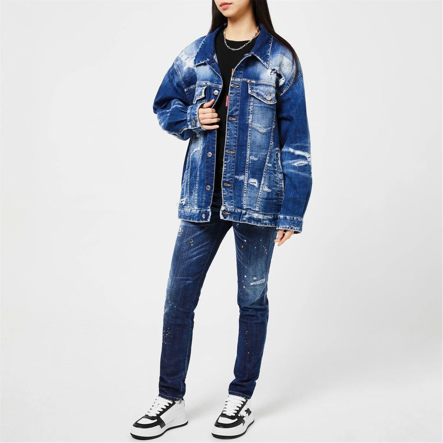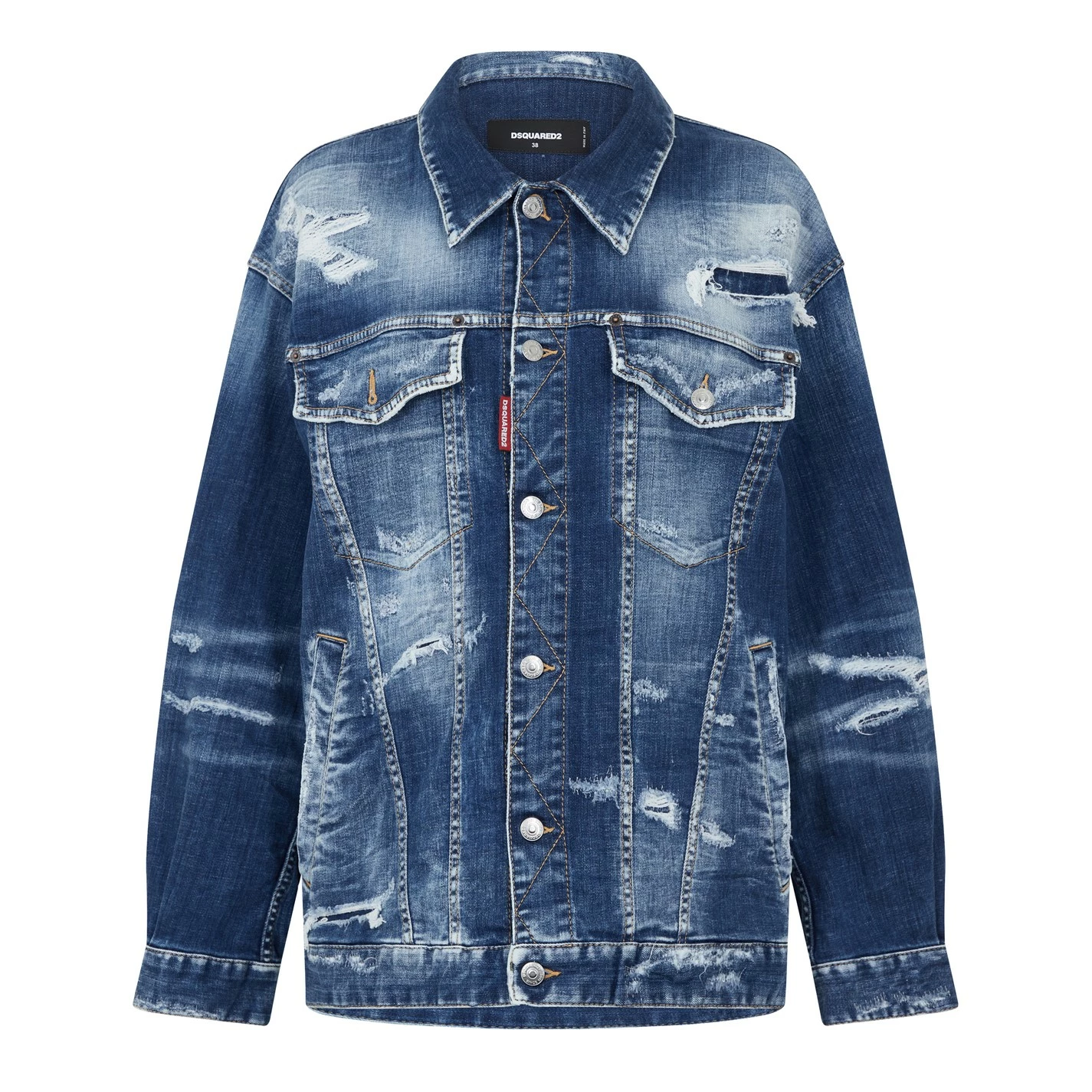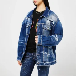 Upgrade your wardrobe with the DSqaured2 Jean Denim Jacket. The perfect transitional piece, this denim jacket is constructed from a cotton fabrication decorated in a distressed finish for a contemporary design. Featuring long sleeves, a classic collar, full button fastening, buttoned sleeves, and four front pockets. This piece is finished with the Dsquared2 logo attached to the front for a minimal designer touch. Machine washable, follow care label instructions.
