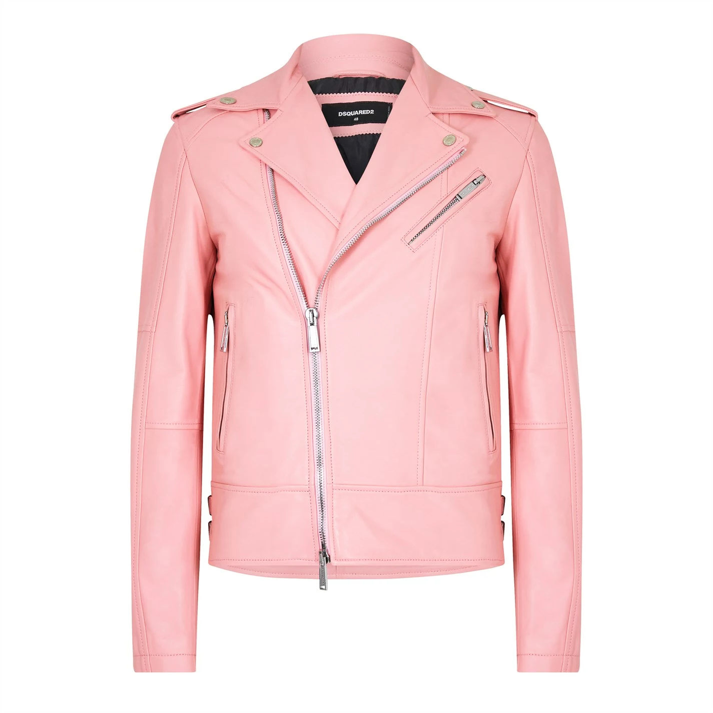 Invest in a classic piece with a twist, the Sport Leather Jacket brought to you by DSquared2. Crafted in a pure sheepskin leather, this biker jacket features a slim fit with a double breasted two-way zip closure and a lapel collar. Boasting shoulder tabs, zipped pockets throughout, zipped cuffs and finished in a solid colour throughout with branding throughout. Composition: Main: 100% Sheepskin Leather. Pocket Lining: 100% Cotton. Sleeve Lining: 100% Polyester. Care: Dry clean only.