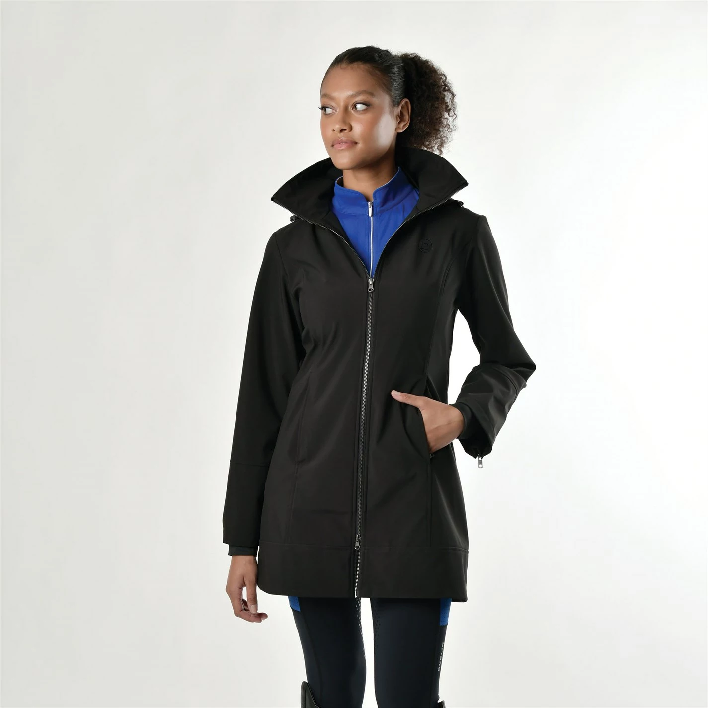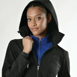 Made from a lightweight, bonded shell fabric which is 100% polyester, the Dublin Remy Jacket is a great choice whether you are riding or working around the yard. Storm cuffs help to keep hay out or water from running up your arms, whilst reflective piping on the back waist provides extra visibility. The Dublin Remy Jacket has a back zip with rear gusset to protect the back of your saddle whilst riding. It is both showerproof and windproof, with a removable hood to protect against the unpredictable weather. Princess body seam lines provide a tailored fit whilst the invisible zip pockets on the lower front ensure you have somewhere to store your valuables. Available in sizes Ladies XSmall to Ladies 2XLarge
