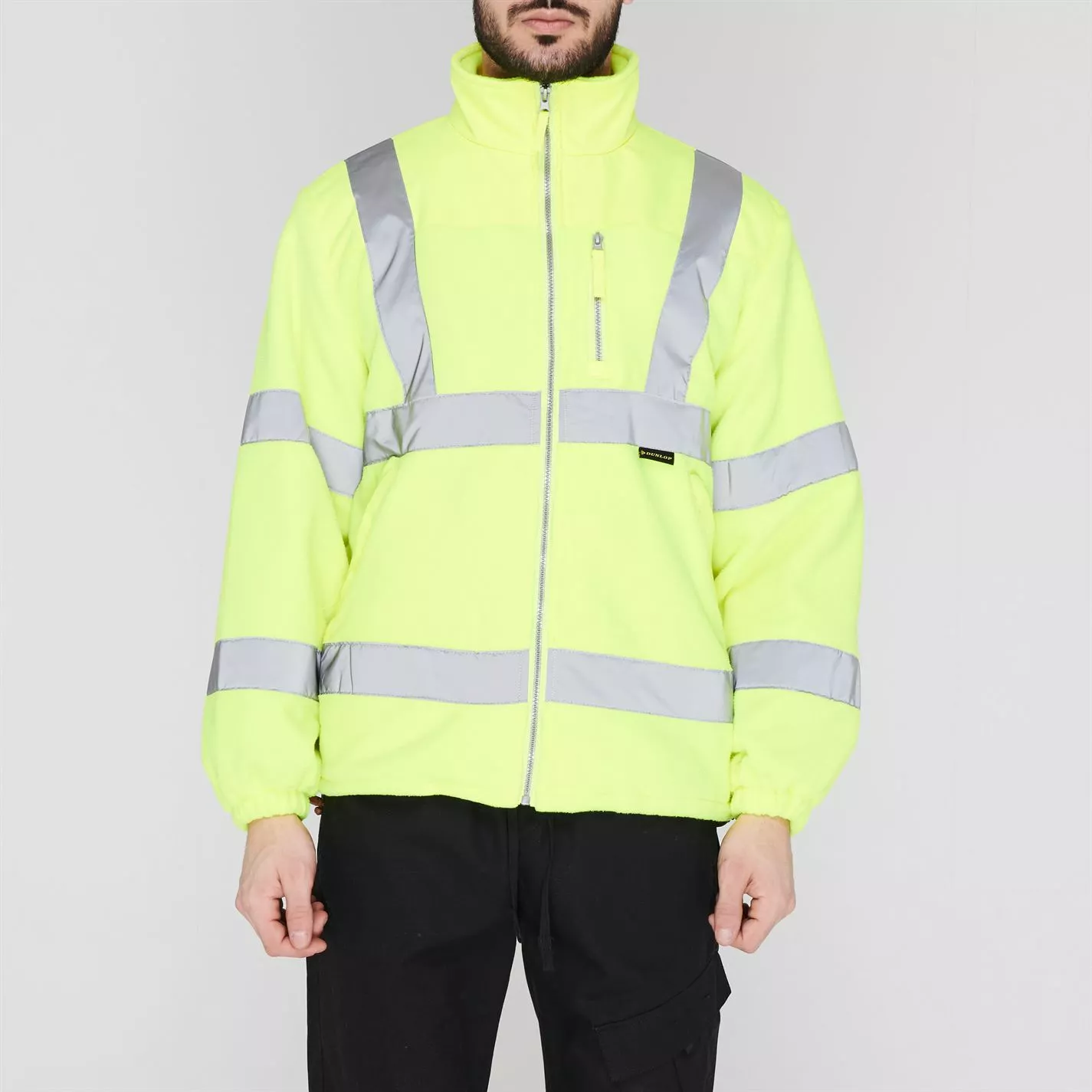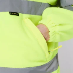 This Dunlop Hi-Vis Jacket will ensure you stay warm thanks to the fleece design and lined inner with a pull toggle hem for a secure and comfortable fit. The mens hi-vis also features hi visibility strips throughout the jacket and is complete with a full length zip and 3 zipped pockets for your essential items.