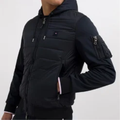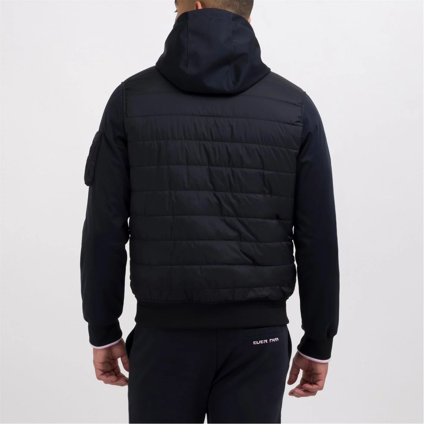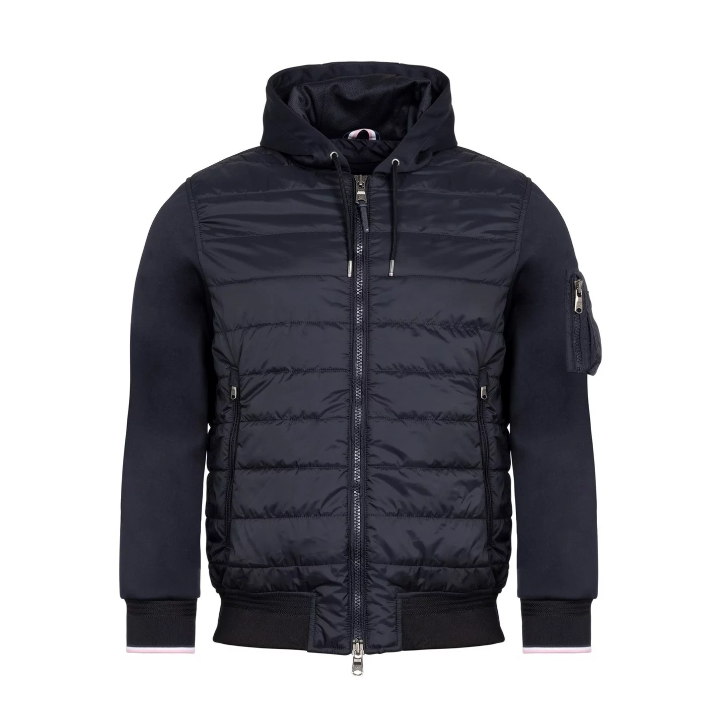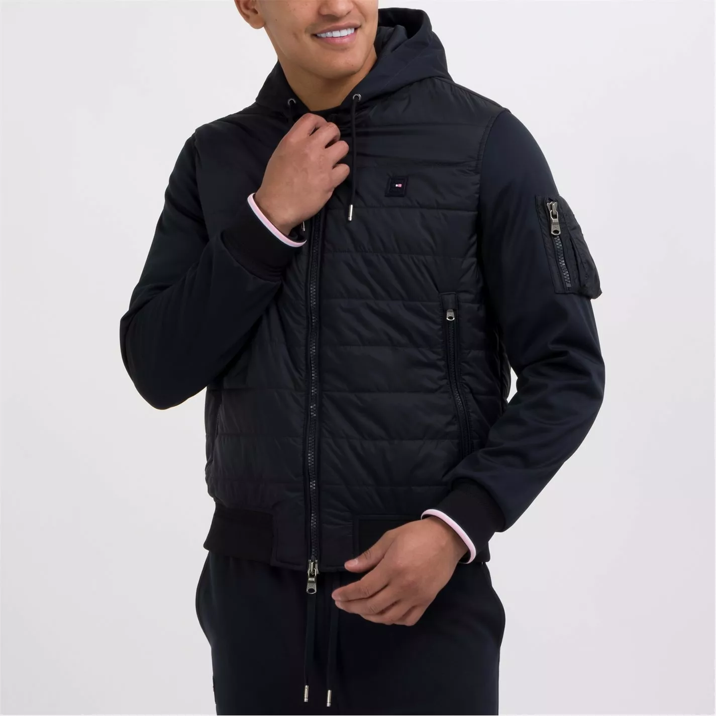 This hooded jacket is very comfortable thanks to the quality of its construction. It has two-way zip fastening, 2 zip front pockets, 2 zip interior pockets and a zip pocket on the left sleeve. The collar, bottom hem and cuffs are ribbed. The filling is made entirely from polyester fibres derived from recycled plastic bottles Polyester Water-repellent fabric Regular fit Double zip fastening 2 zip front pockets 2 zip interior pockets 1 zip pocket on the sleeve Eden Park crest badge embroidered on the breast Drawstring hood Cuffs with tricolour bands Ribbed cuffs and bottom hem.