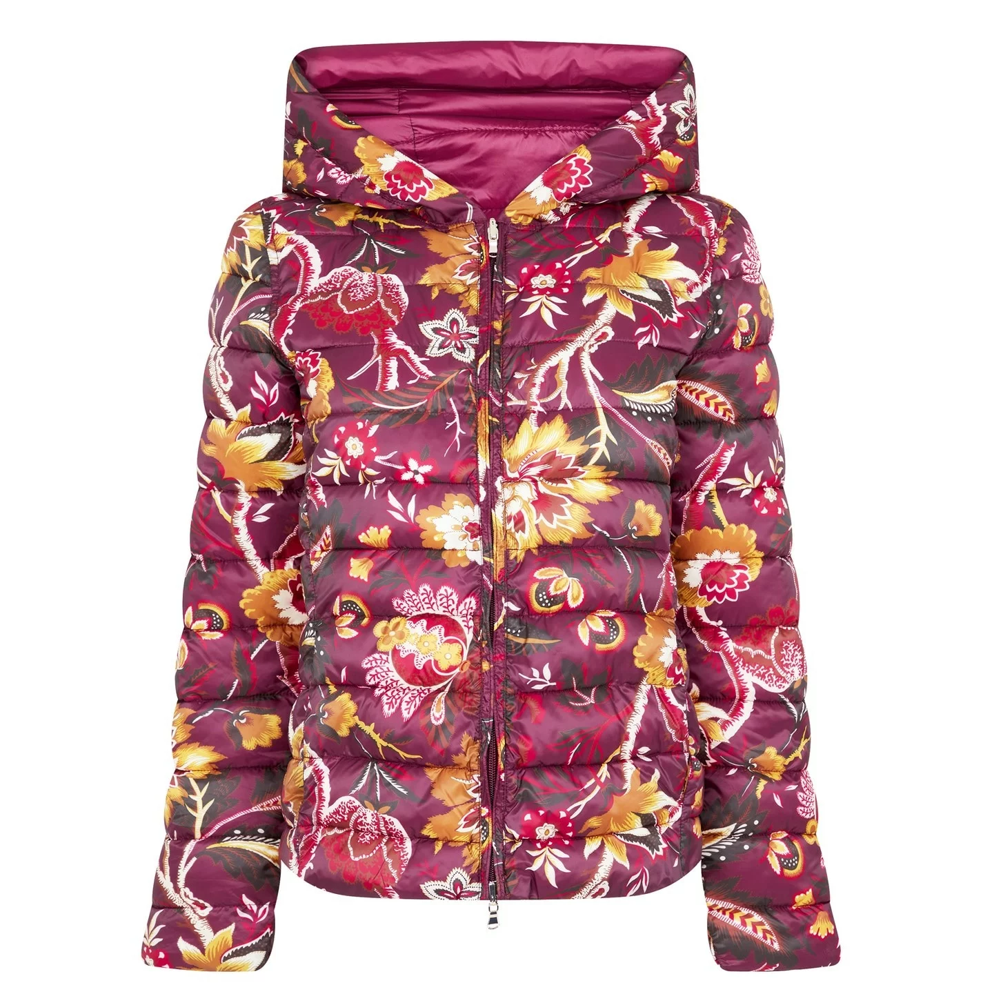 Enhance your collection with this Emme Pegli Padded Jacket. Constructed in a collarless style with full zip fastening for a secure fit, it features long sleeves, two side pockets and a large hood for a classic look. This jacket is an all over print design with a signature logo and is complete with Emme branding.