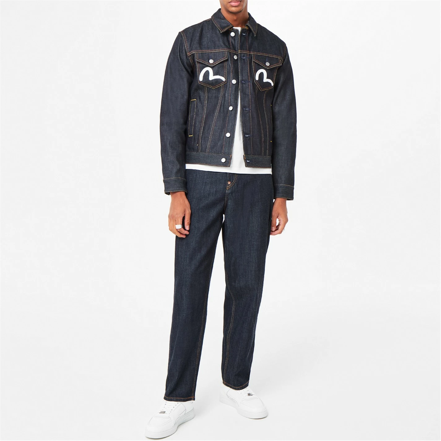 Refresh your essential outerwear with the Seagull Denim Jacket from evisu. Cut with a classic collar and buttoned cuffs to the sleeves, this jacket is made from 100% cotton for a comfortable wear. With buttoned pockets to the chest alongside twin hand pockets, this jacket is finished with the Evisu seagulls printed to the chest pockets and the Godhead leather patch to the rear hem.