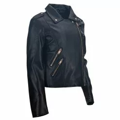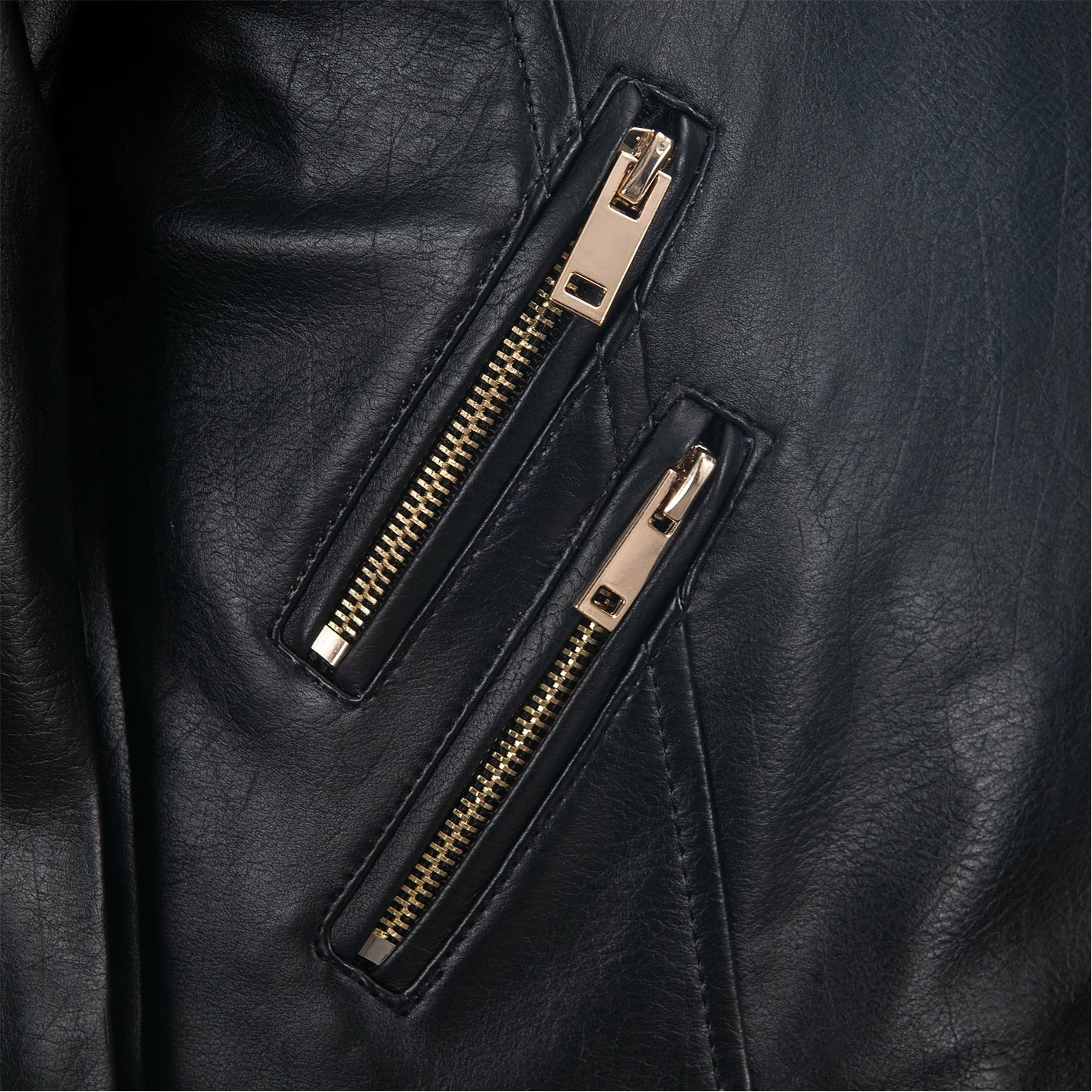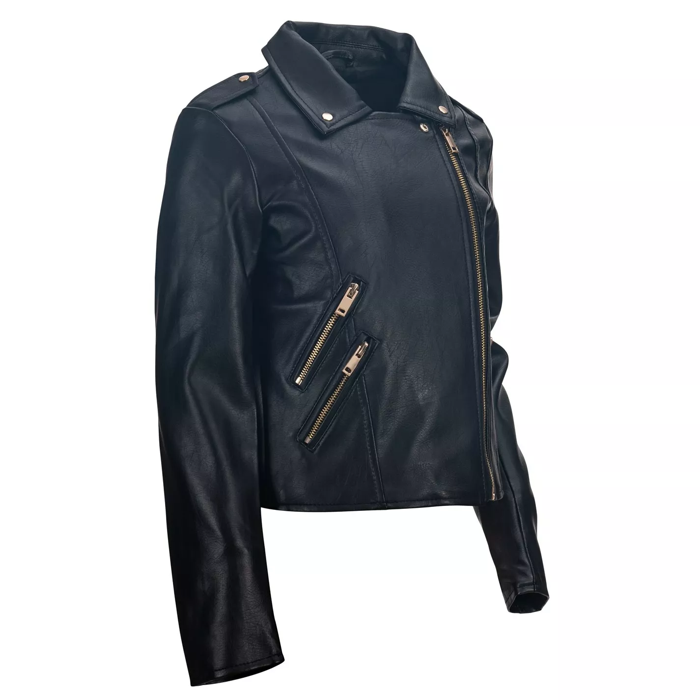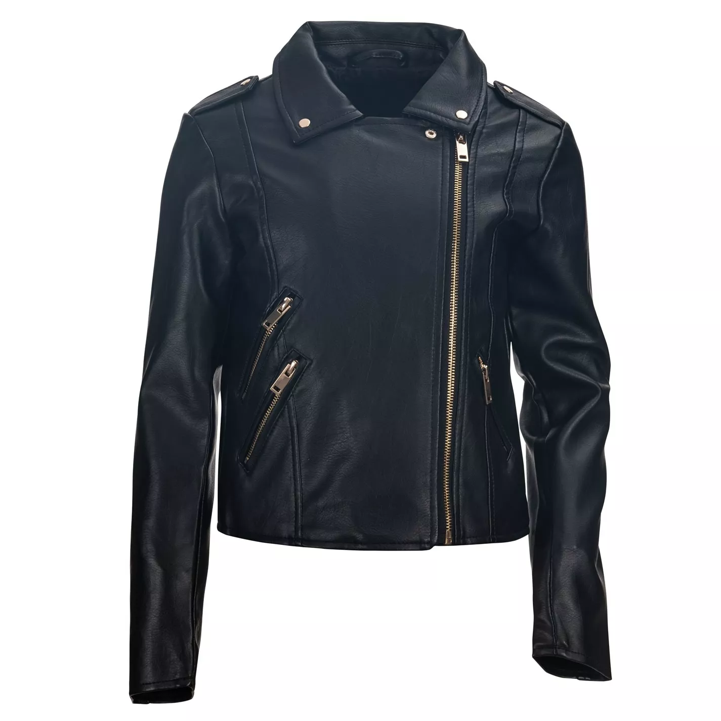 This classic biker style Firetrap Faux Leather Jacket features a fold over collar with branded metal hardware and an offset front zip fastening.