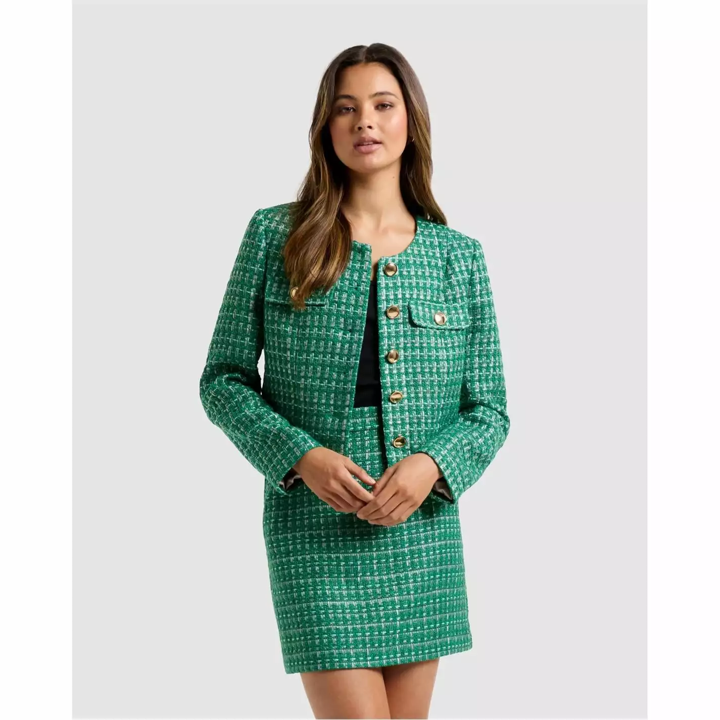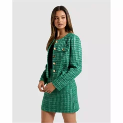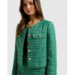 Feminine design meets trending style. The Eden Boucle Crop Co-ord Jacket from Forever New is the piece your wardrobe’s been waiting for. This garment is made using recycled polyester, a sustainable alternative that reduces carbon emissions, water usage and energy consumption.