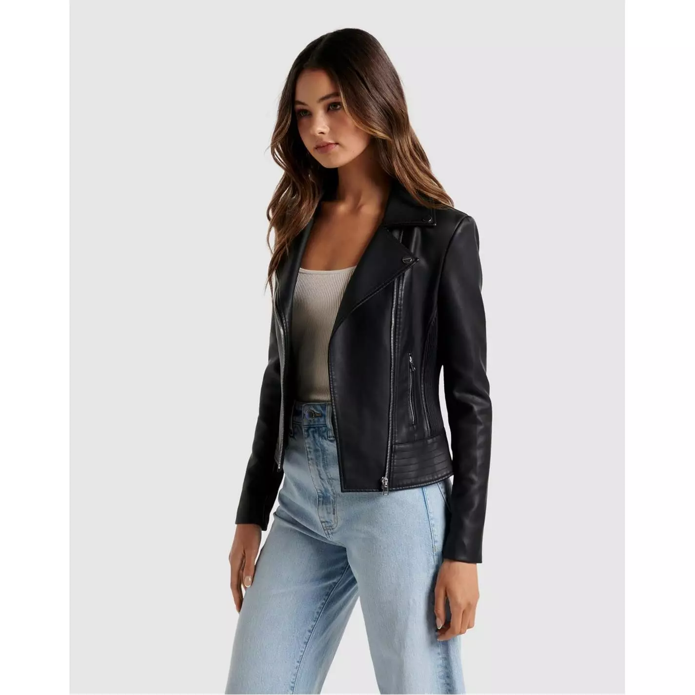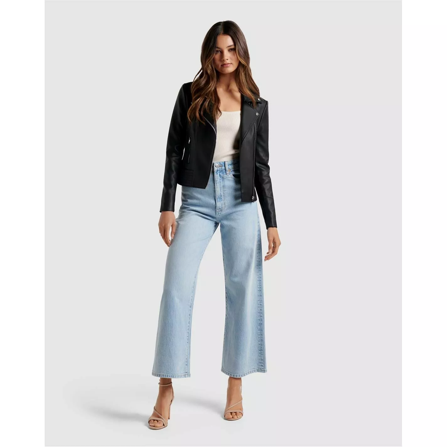 Feminine design meets trending style. The Skye Vegan Leather Biker Jacket from Forever New is the piece your wardrobe’s been waiting for. This product is registered with The Vegan Society. Its materials and method of production are completely free of animal products, by-products or derivatives.