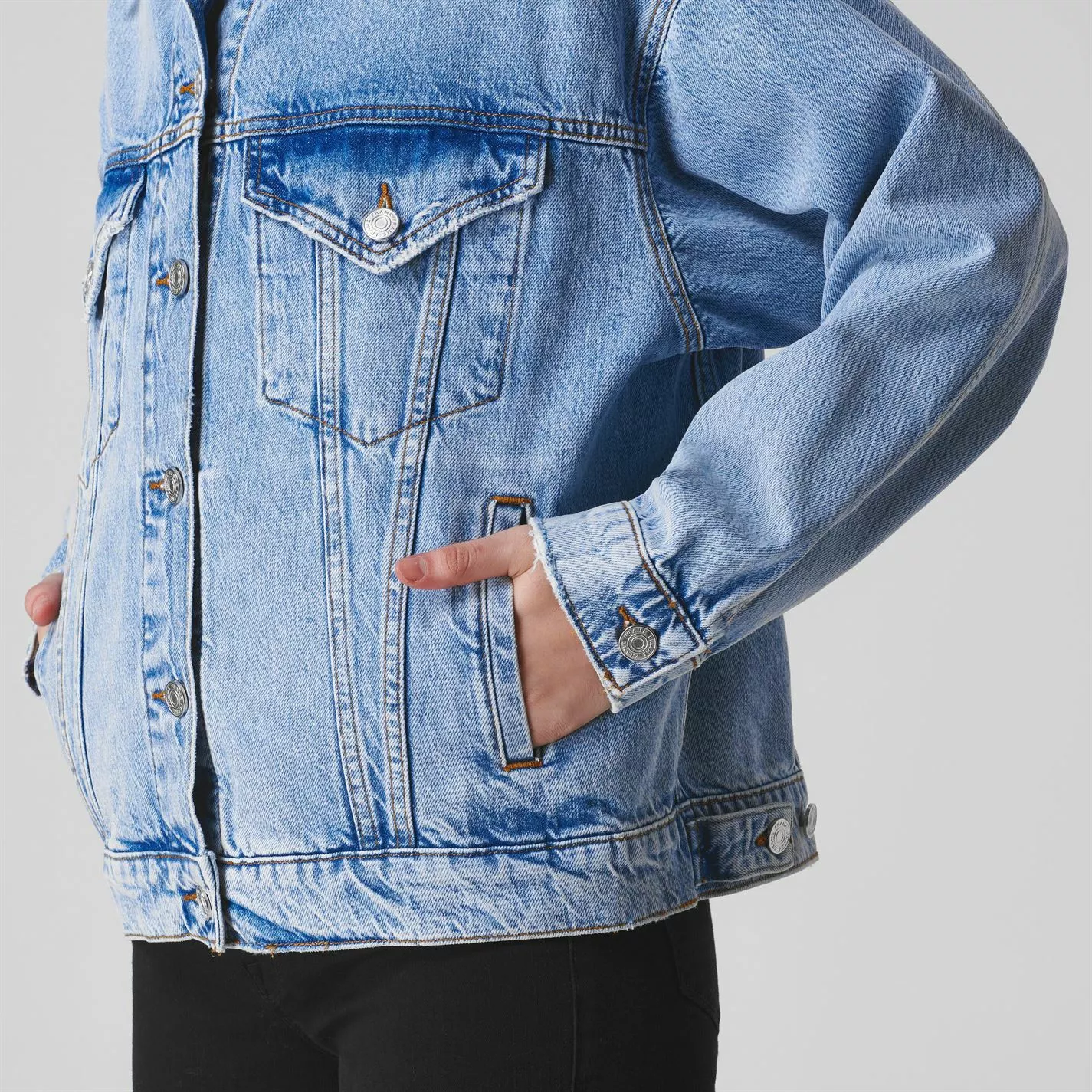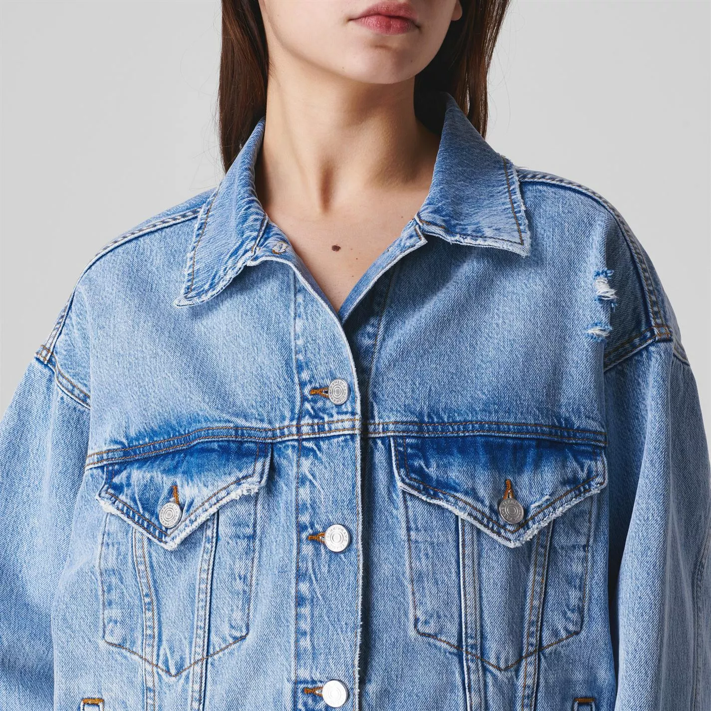 Update your collection with this Oversized Jacket from frame. Crafted in a cotton fabrication with a fold over collar and central button closure for an easy wear, it features long sleeves with button cuffs and four pockets for a classic look. Decorated in a denim wash for a high end, fashionable finish.