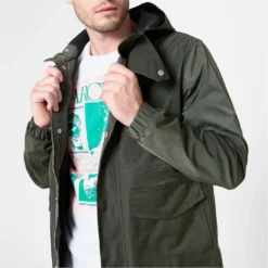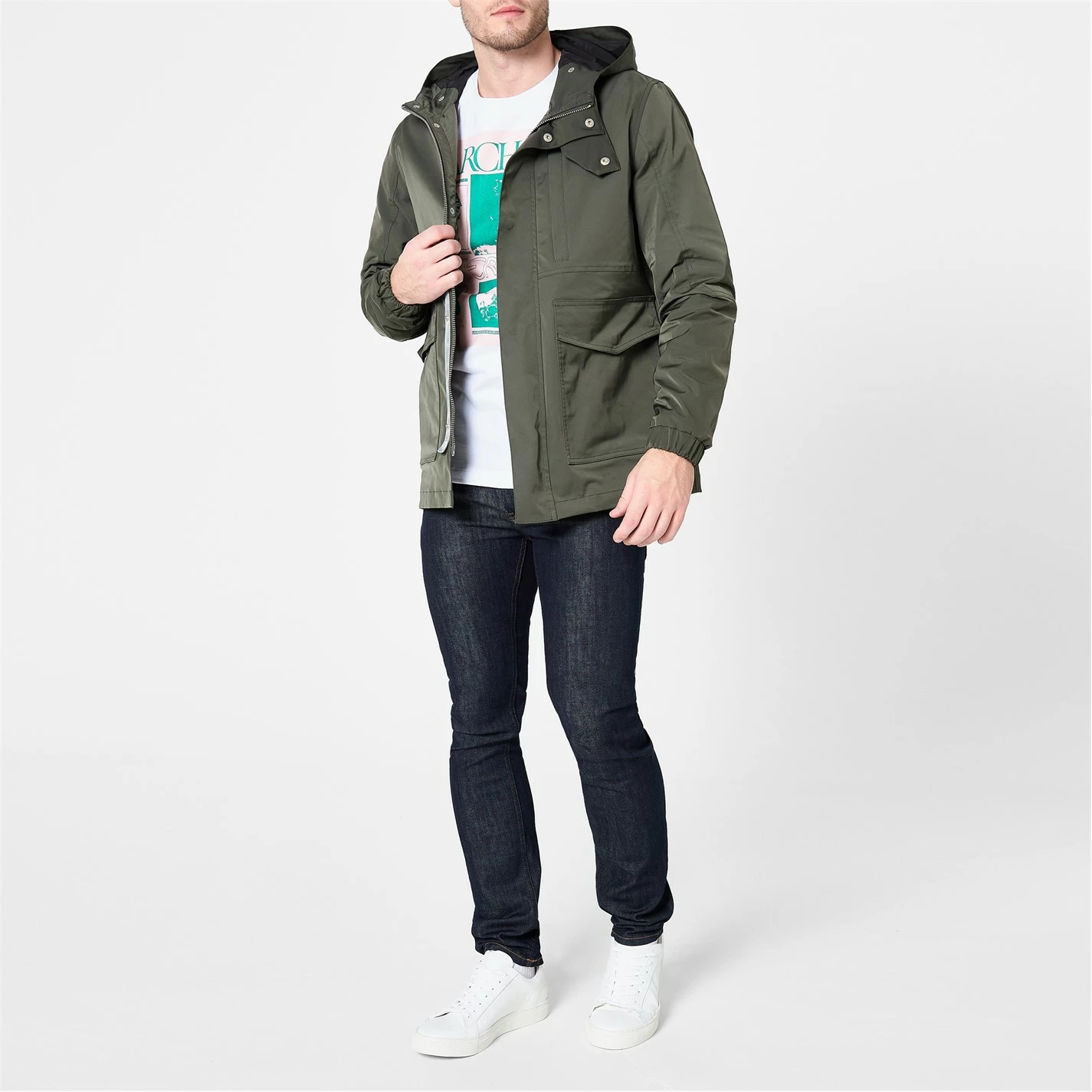 Perfect for winter, this relaxed fit silhouette has been crafted from a mid-weight twill fabrication boasting a staple block colourway for a clean and minimal aesthetic. Designed for those unexpected weather changes in the transitional months, this garment offers a hooded collar with a storm flap fastening to the funnel neckline while the concealed full zip fastening provides warmth and a secure fit. With elasticated cuffs to the long sleeves, this jacket is complete with two flap pockets and zipped pocket to the chest perfect for styling with jeans and ankle boots.