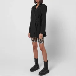 Add a minimalistic piece to your collection with the ganni Melange Suit Jacket. Crafted from a lightweight Viscose-blend fabrication, this wrap style suit blazer styles a solid block colour with a notched lapel collar for a classic look. Designed in a relaxed fit, this blazer has a double button fastening to the exterior with an adjustable snap-style belt to cinch in the waist, or simply detach the belt and pull loop through inside for a simpler, straight silhouette. Complete with long sleeves and two faux pockets, this piece is complete with a full Ganni logo print lining to the interior for a premium finish.