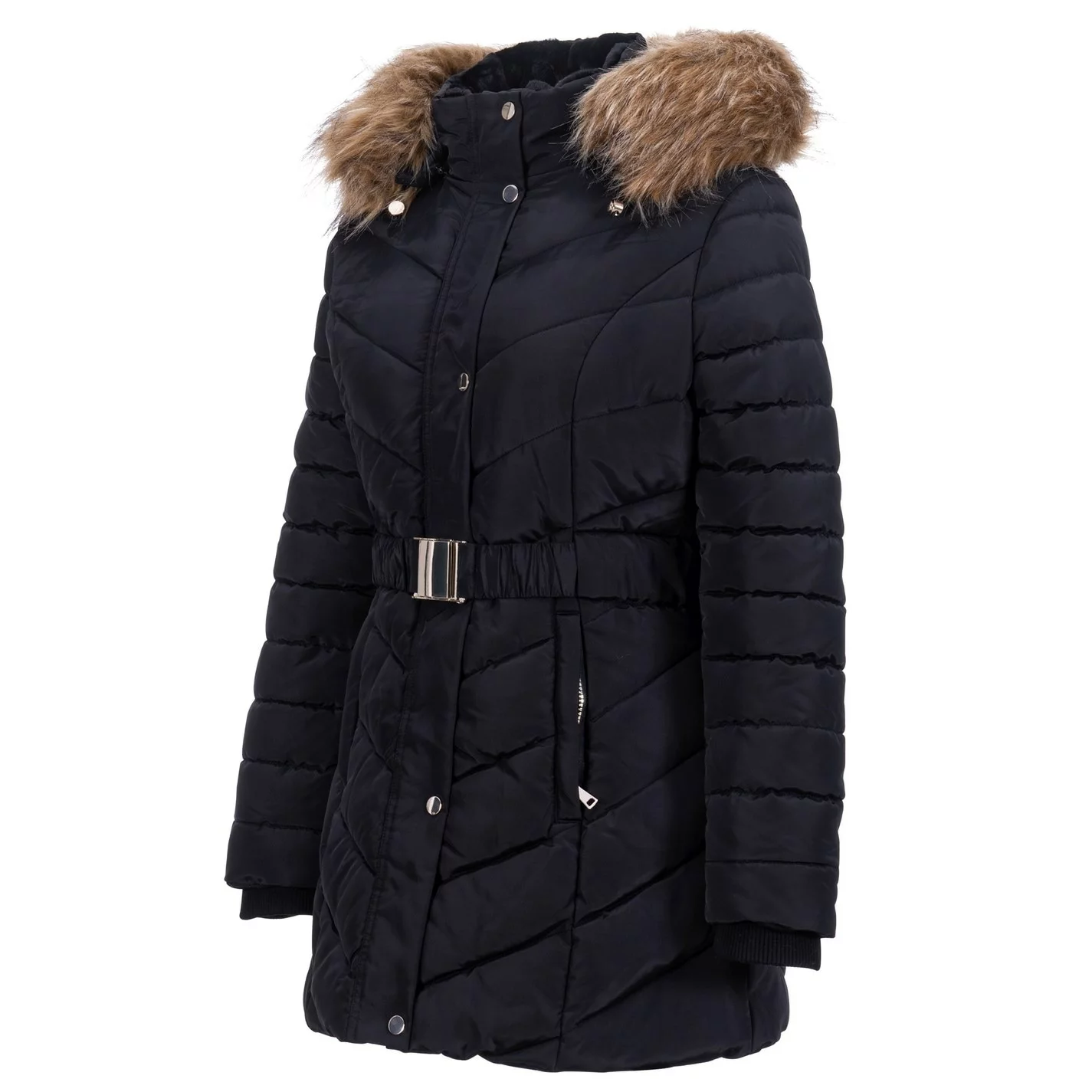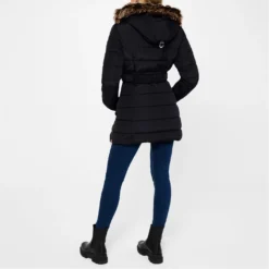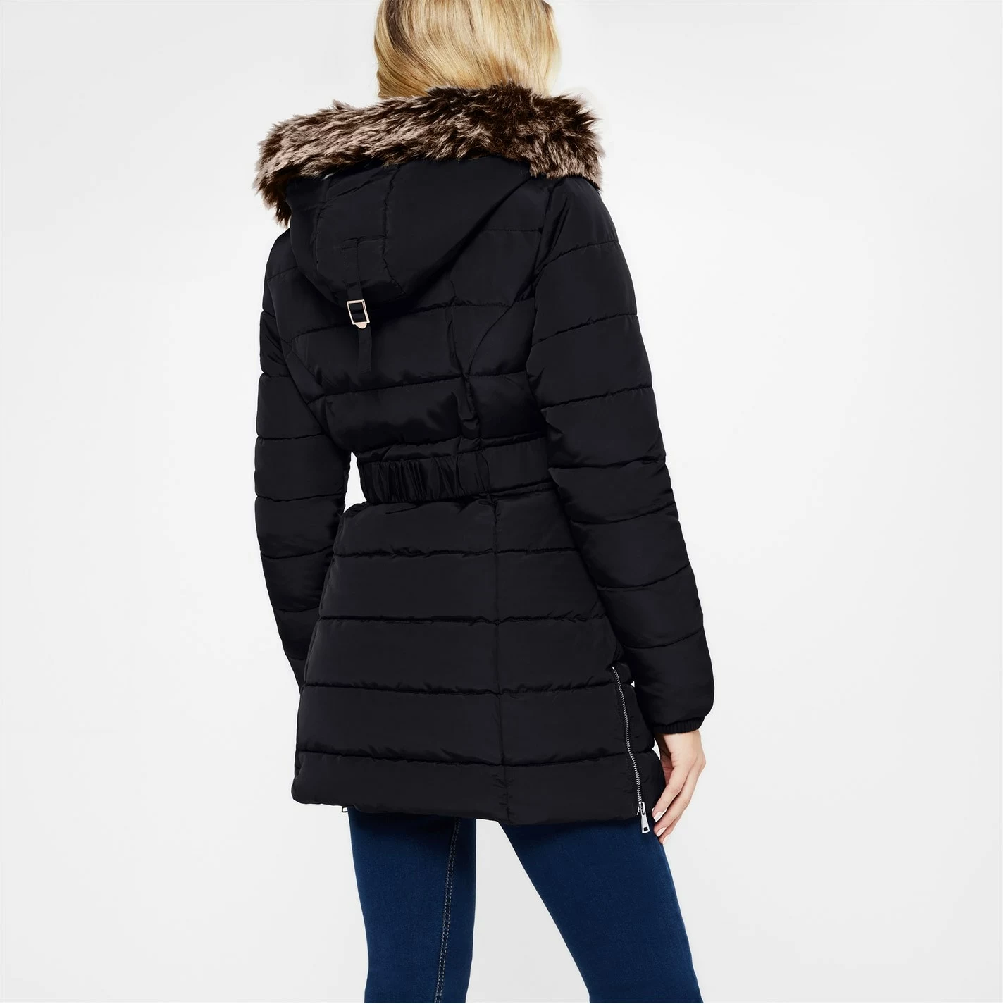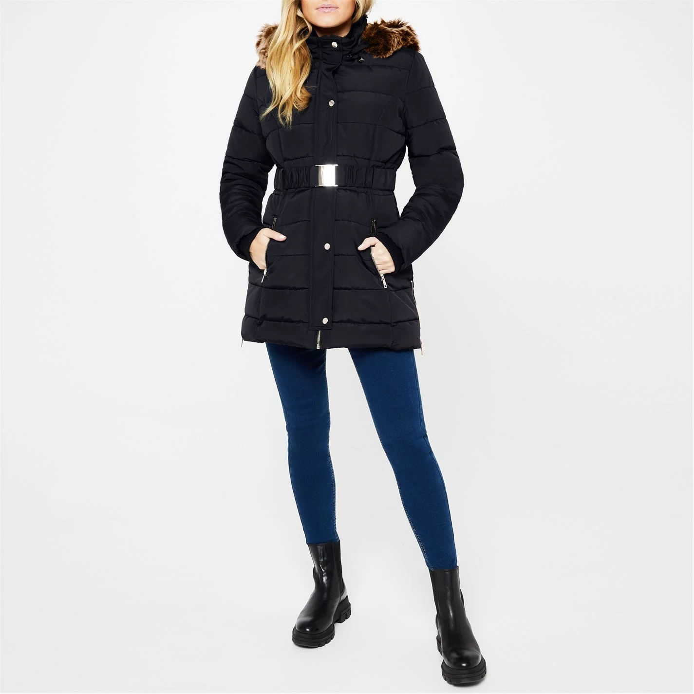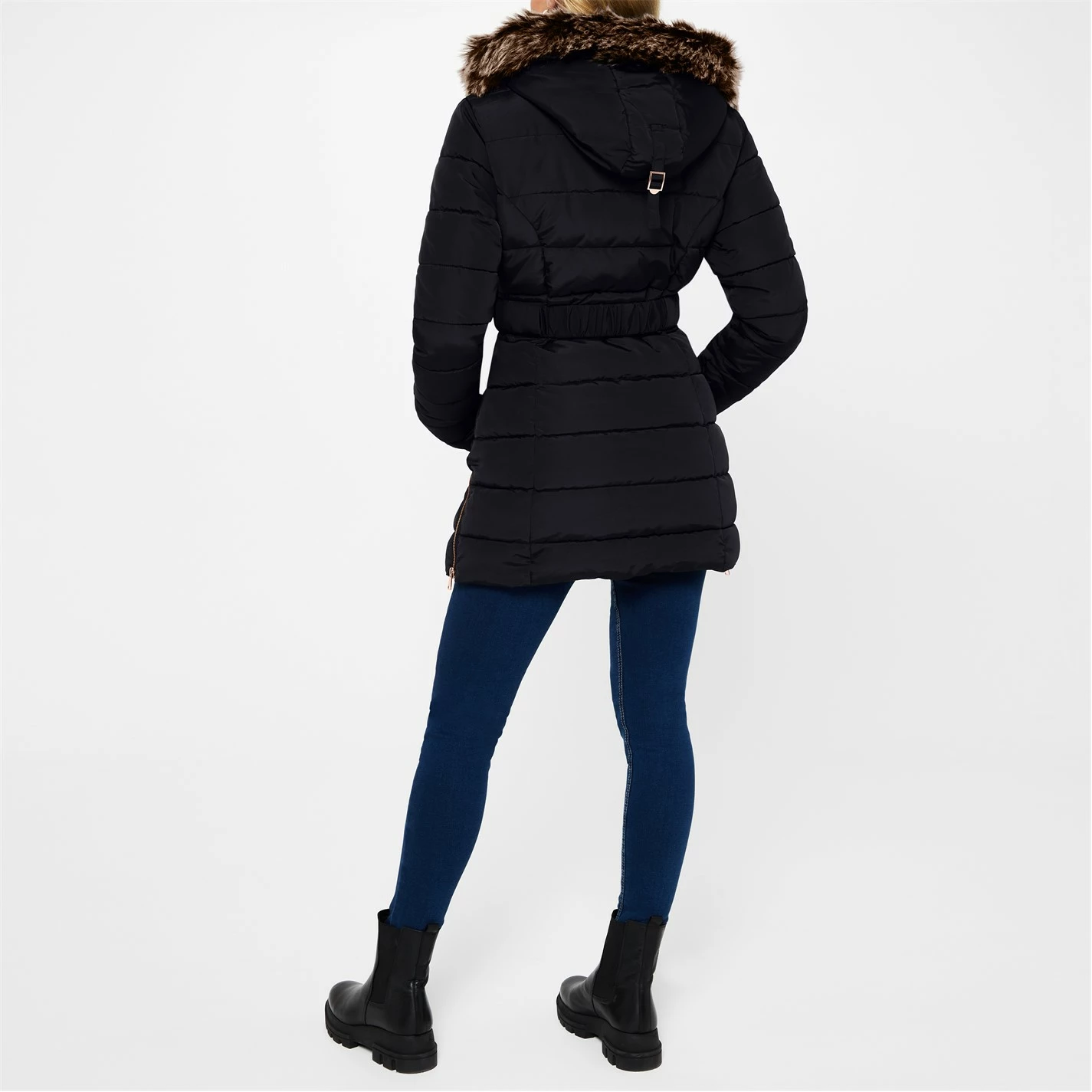 This Golddigga Belt Bubble Jacket is crafted with full zip and belt fastening and long sleeves with ribbed trims for comfort. It features a removable fur trim to the hood and 2 pockets for a classic look. This jacket is designed with a signature logo and is complete with Golddigga branding. Shell / lining / fill: 100% Polyester. Trim: 100% Acrylic. Machine washable.