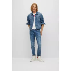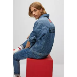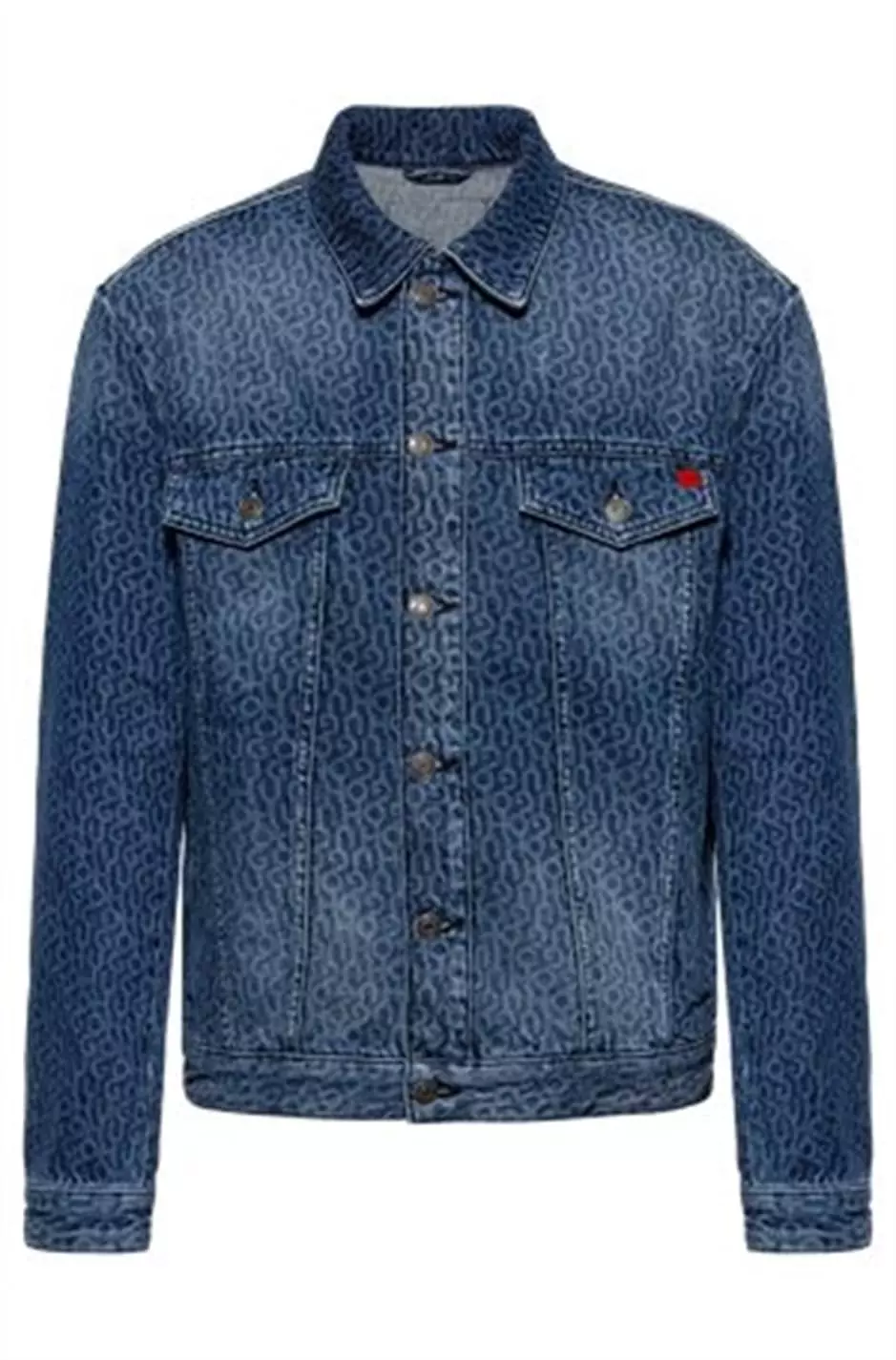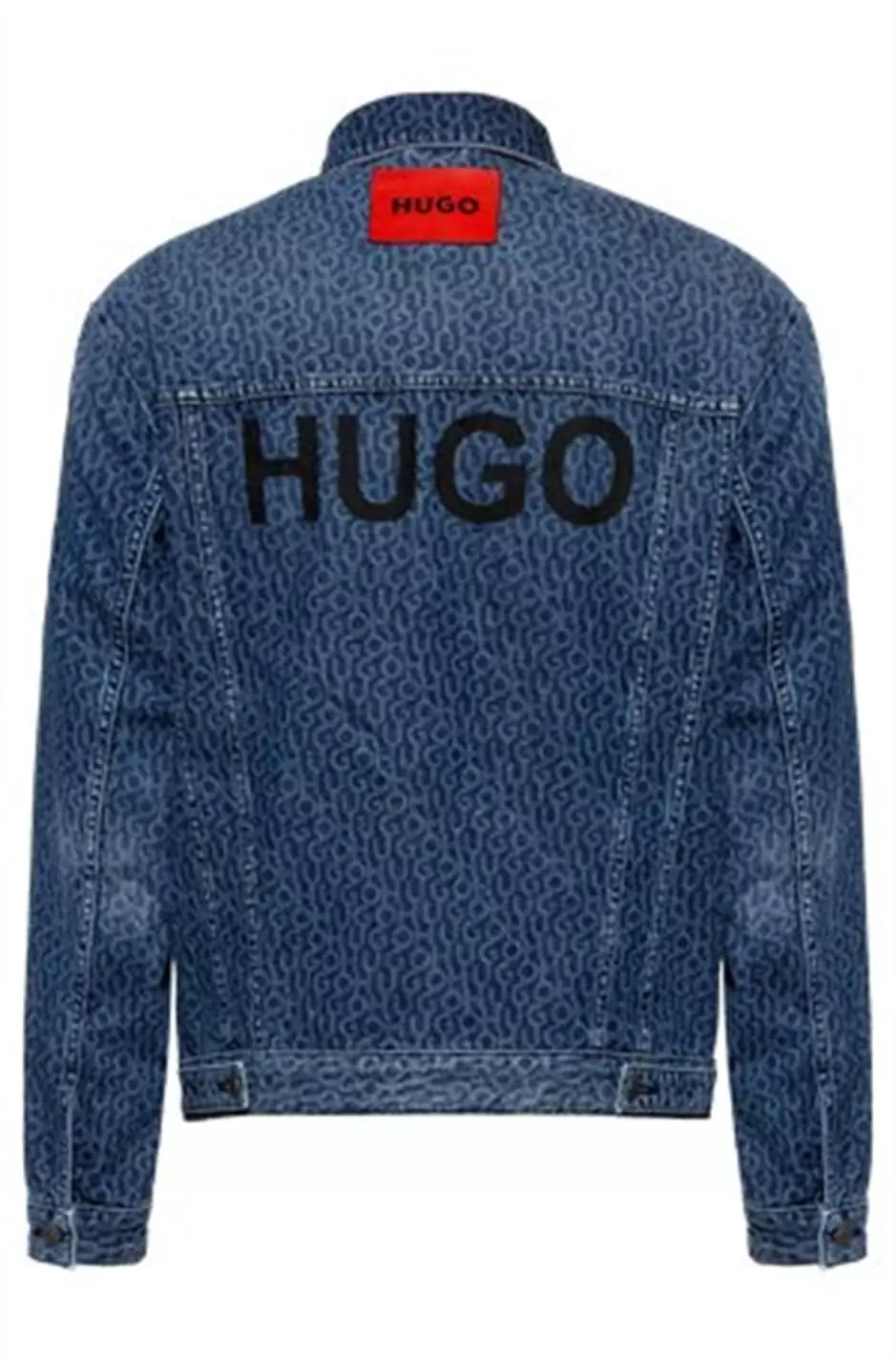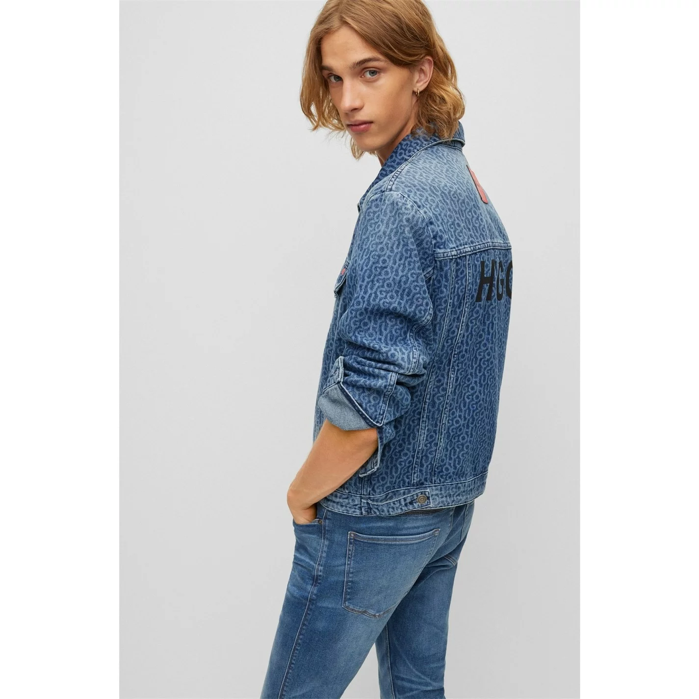 Enhance your collection with this HUGO 076 Denim Jacket. Constructed with a folded collar and full button fastening for a secure fit, it features long sleeves with button cuffs and four pockets for a classic look. This jacket is a subtle all over print design with a signature logo and is complete with HUGO branding.