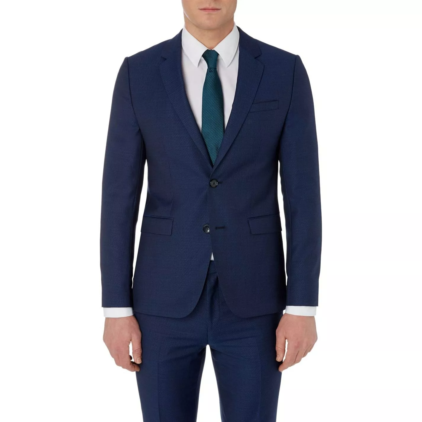 Choose sharp style for your next social event with this Astian extra slim two piece suit jacket from Hugo Boss. Created from pure virgin wool in a single breasted design, it is secured with button fastening for added interest. Featuring a notch lapel and multiple pockets, it is textured for a sleek Hugo Astian Extra Slim Textured Two-Piece Suit Jacket