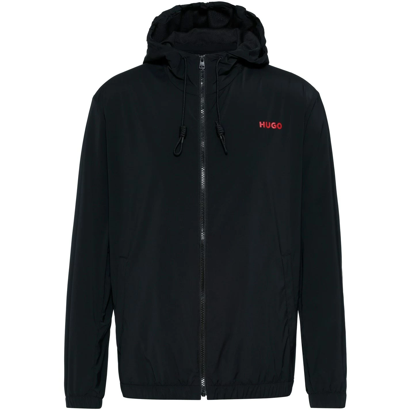 This lightweight jacket has been crafted from a 100% Polyester fabrication boasting a water-repellent exterior for a staple transitional styling piece. With a mesh interior, full zip fastening, drawstring hooded neckline and ribbed elasticated cuffs to the long sleeves, this jacket features a two pocket styling to the waist perfect for you on-the-go essentials. The garment is branded with signature Hugo logo printed to the chest and reverse in a contrasting red colourway.