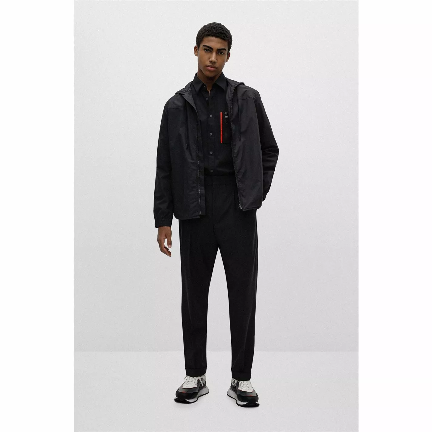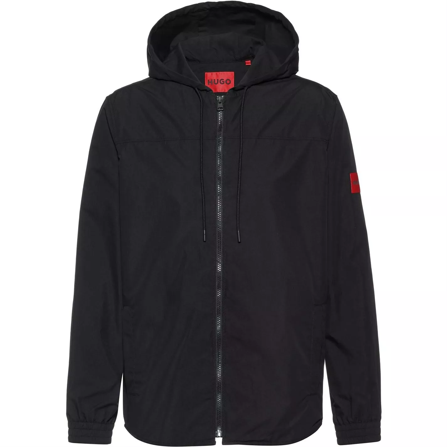 Perfect for laying during the transitional seasons, the Ebindo Zip Jacket from Hugo Boss has been crafted from a premium cotton-blend fabrication boasting a staple black colourway perfect for styling. With a drawstring hood, side pockets, full zip fastening and elasticated cuffs to the long sleeves, this regular fit silhouette is complete with the instantly recognisable Hugo Boss logo accented to the upper sleeve for a designer touch. Style yours with cargo trousers and trainers.
