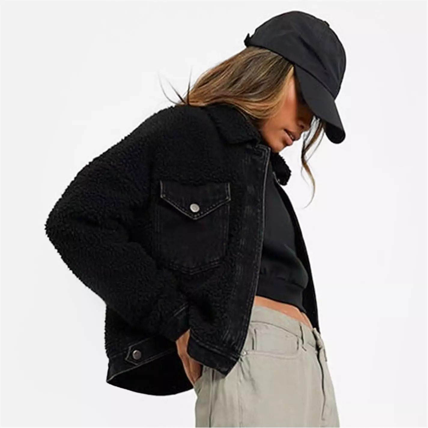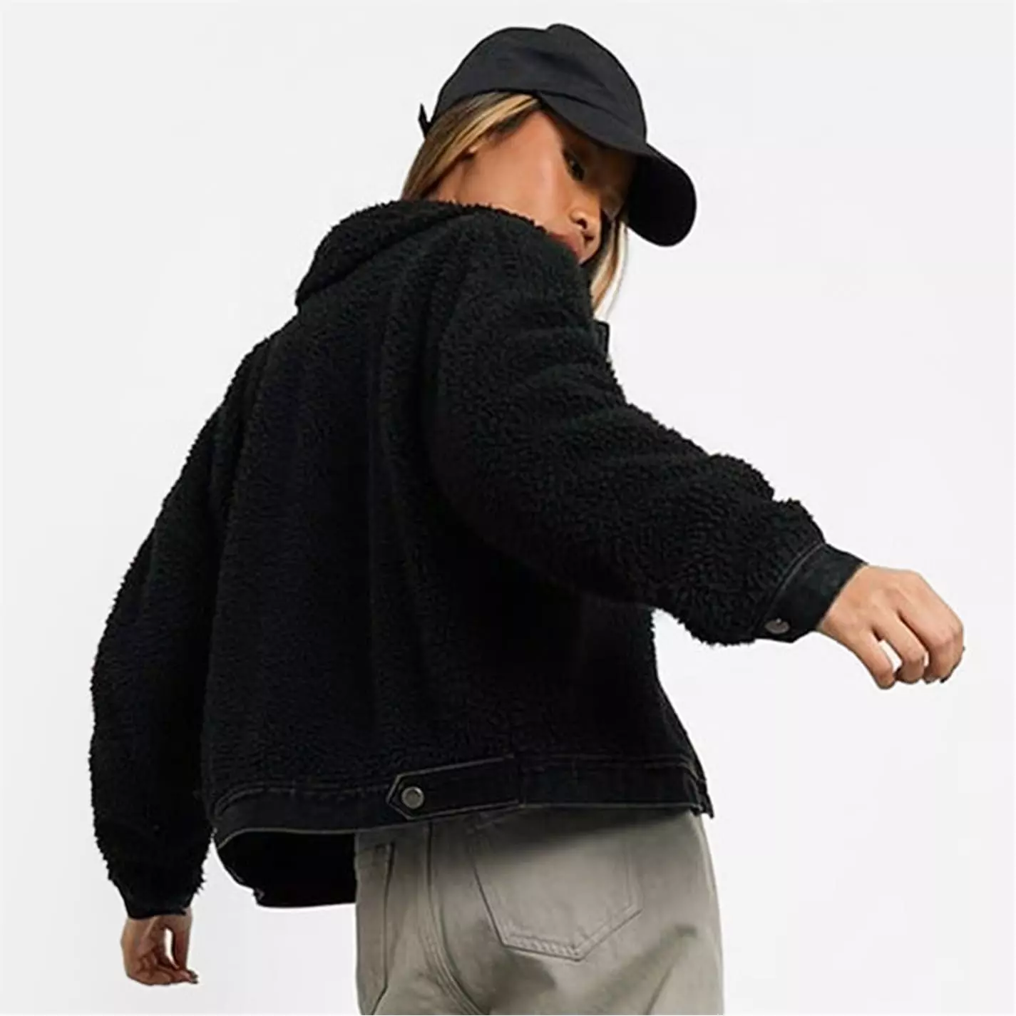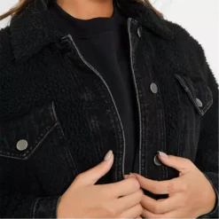 jacket in a borg and denim finish, with chest pockets and zip up fastening.