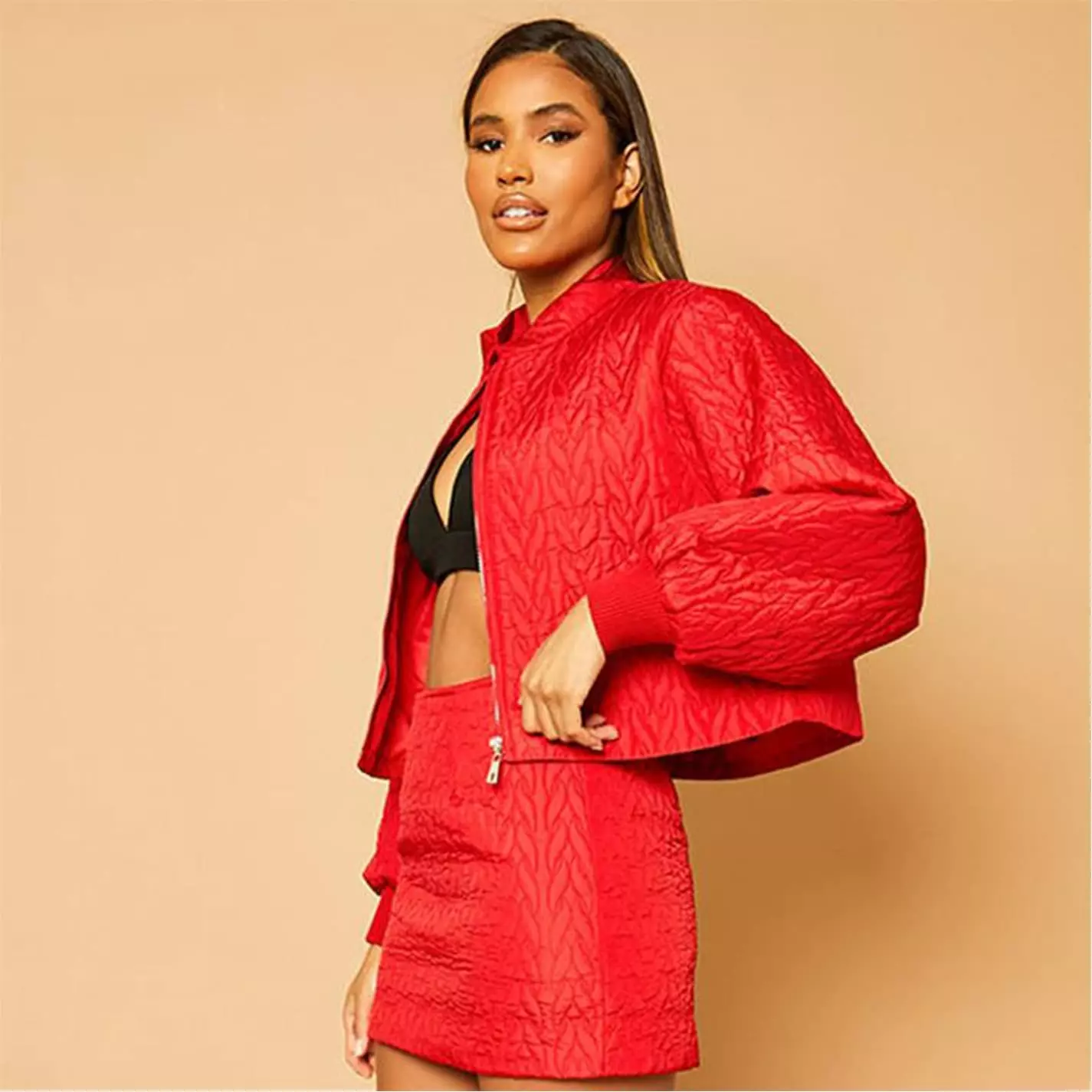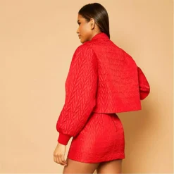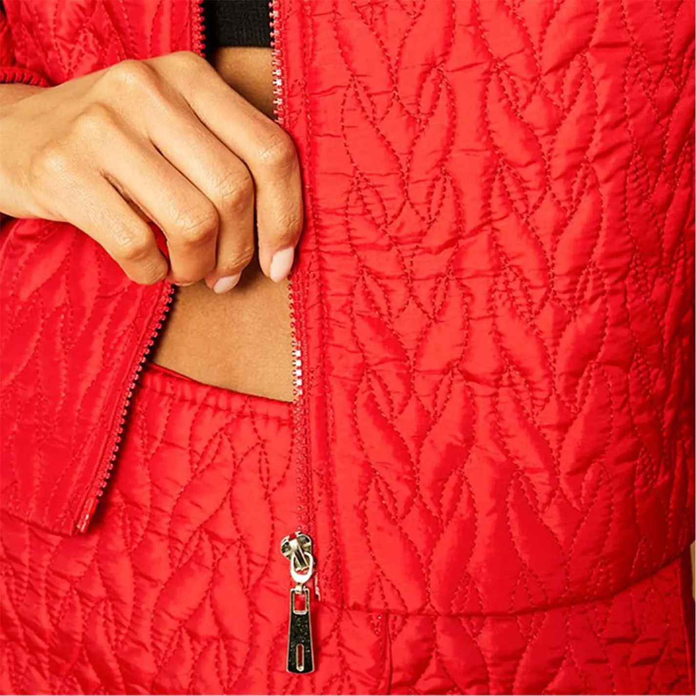 Shacket in a quilted finish, featuring a collarless neckline, zip up fastening and oversized fit.