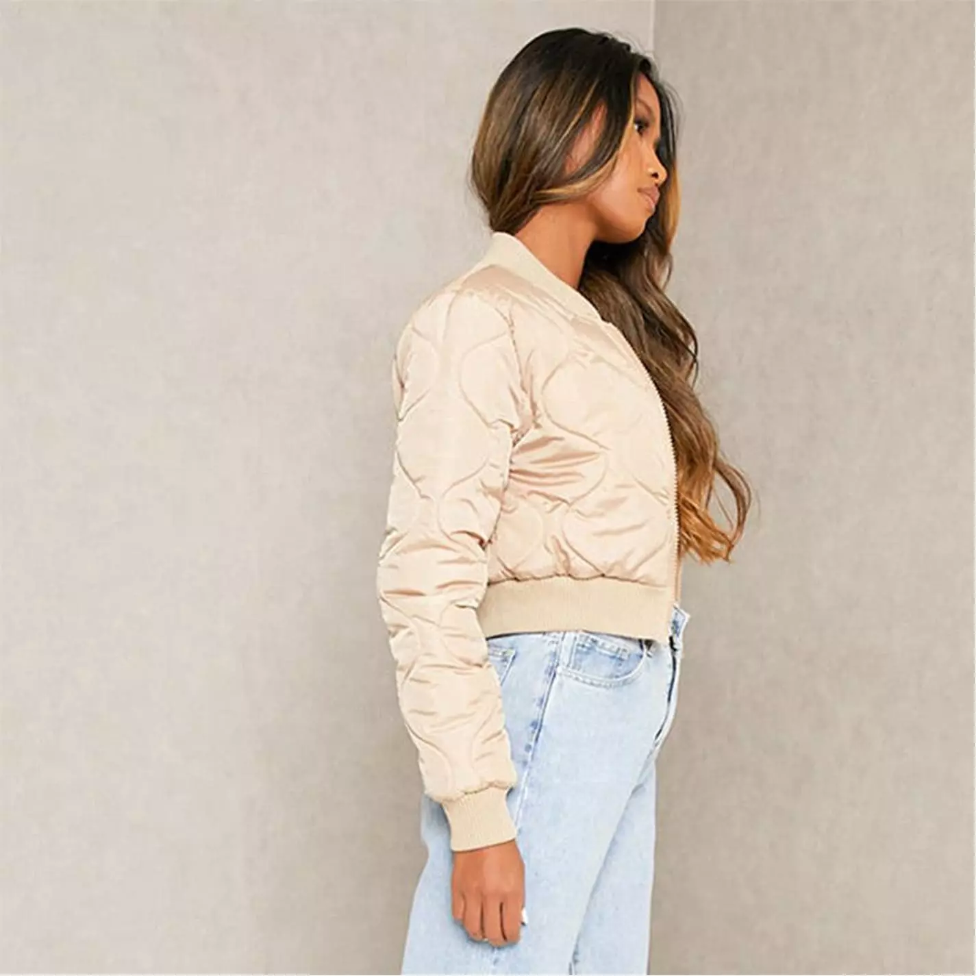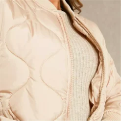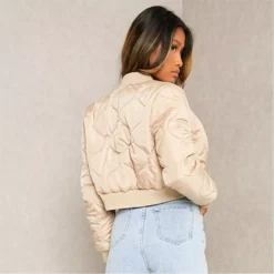 Bomber jacket in an onion quilted finish, featuring a ribbed collar and trim. With a zip up fastening and in a cropped length.