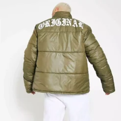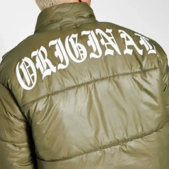 Men’s jacket featuring ‘Original’ slogan graphic across the back in a padded finish and zip up front.
