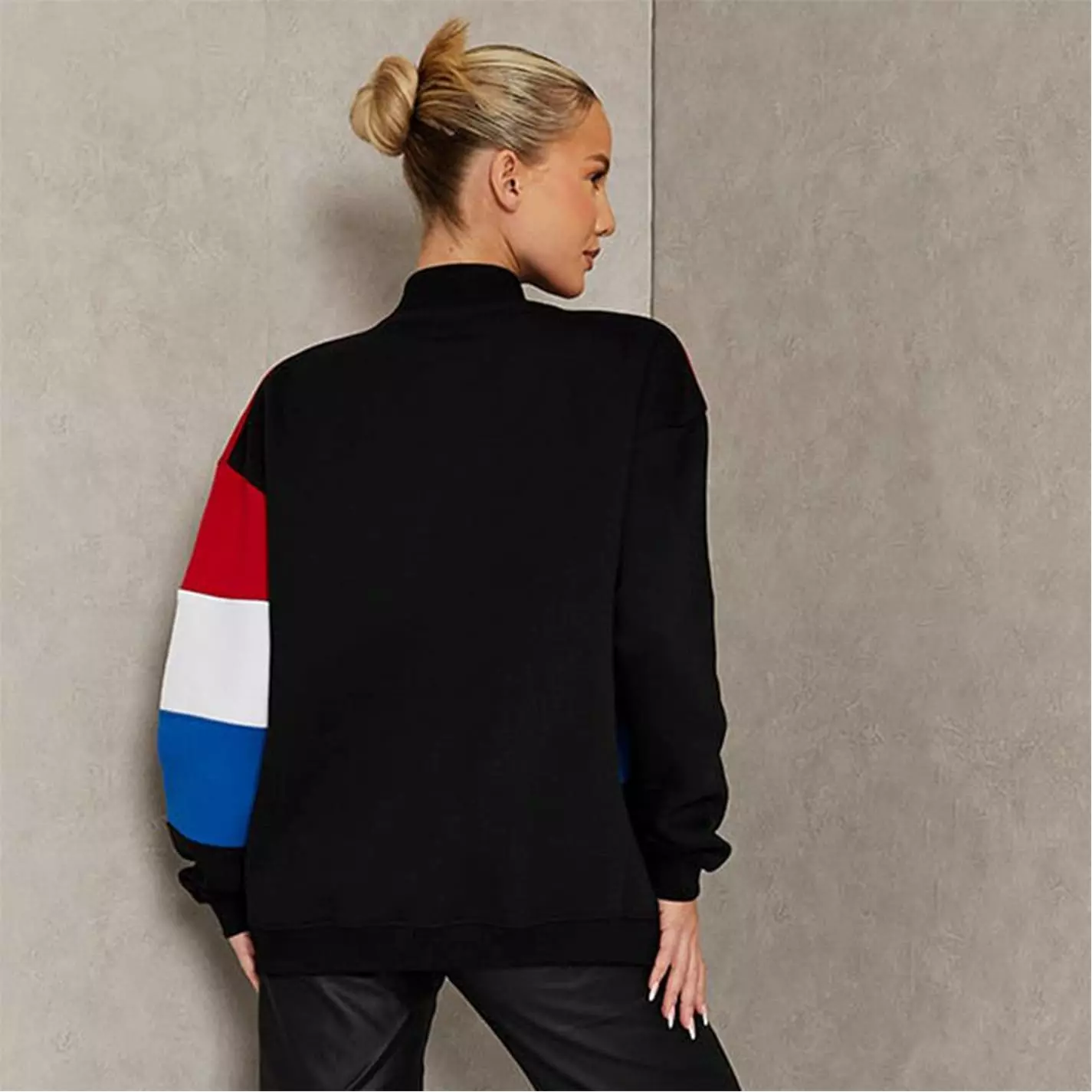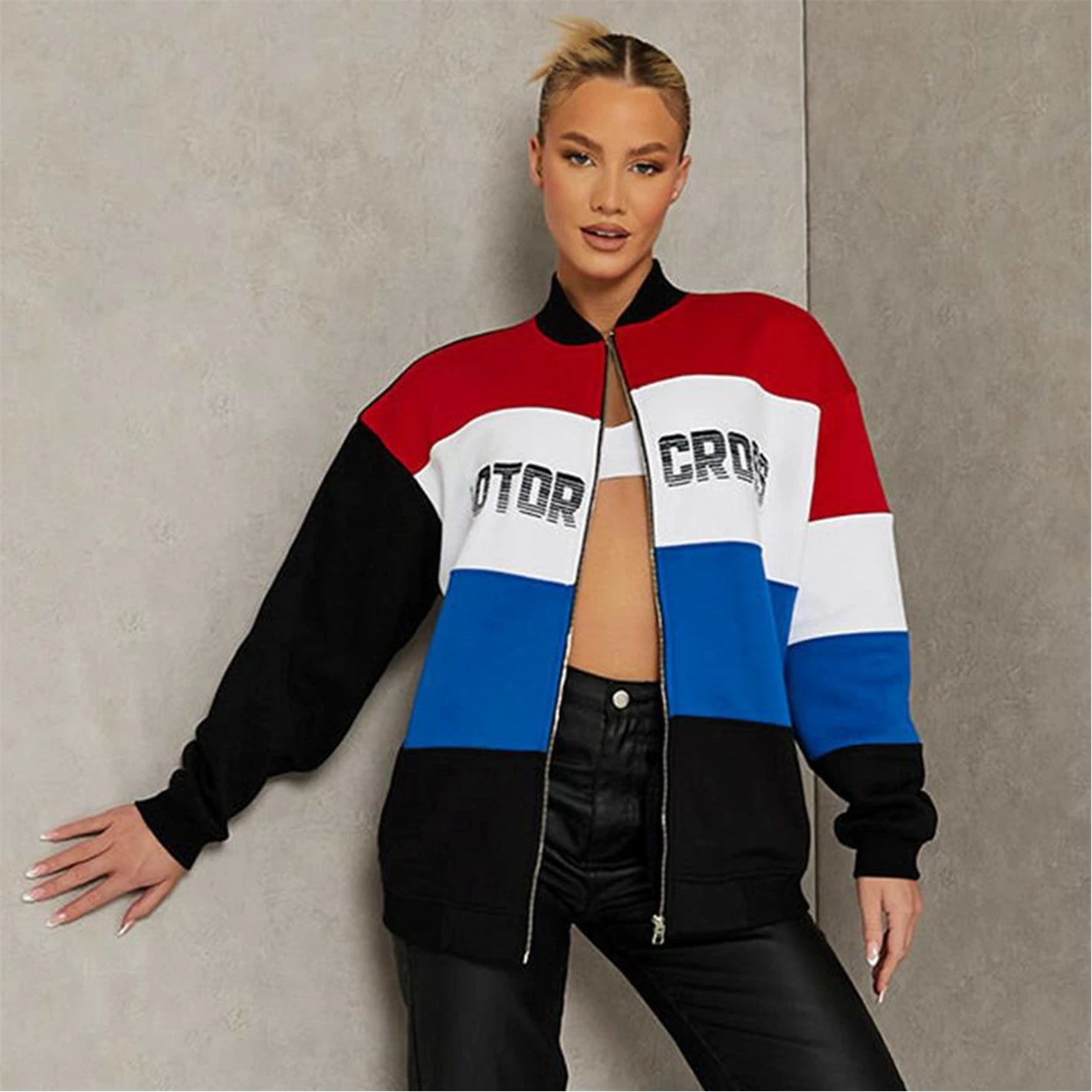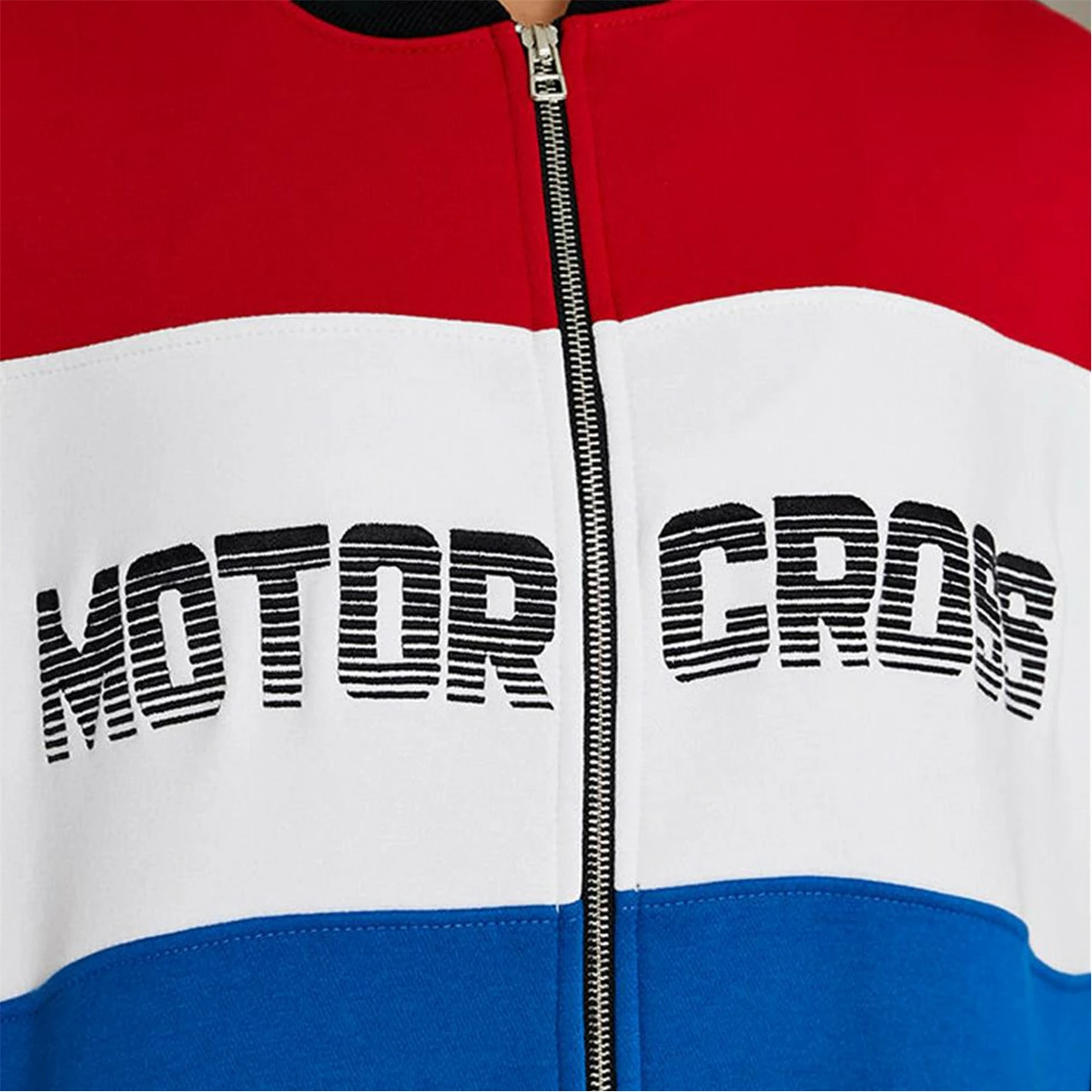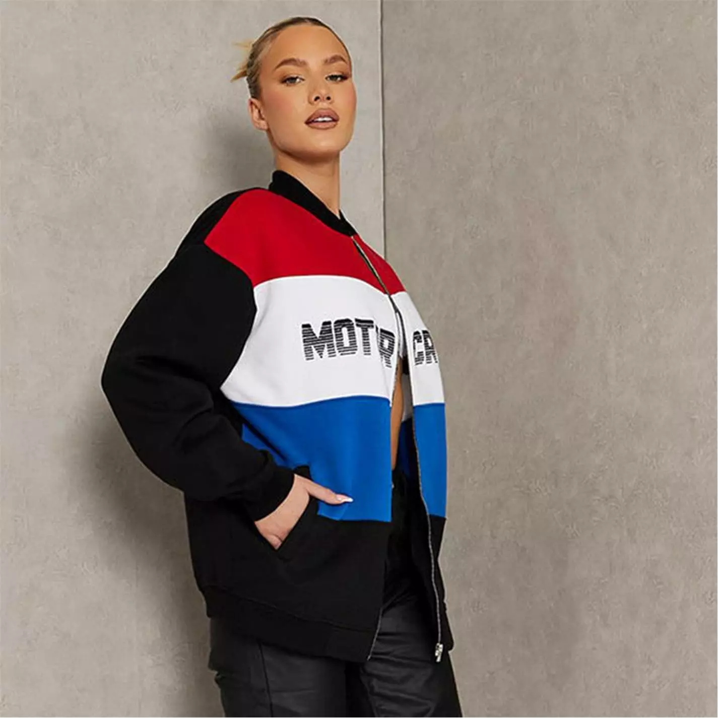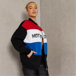 bomber style jacket in an oversized fit featuring front embroidery and colourblock detail.