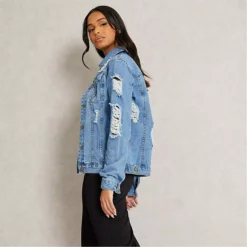 Distressed Ripped Oversized Denim Jacket