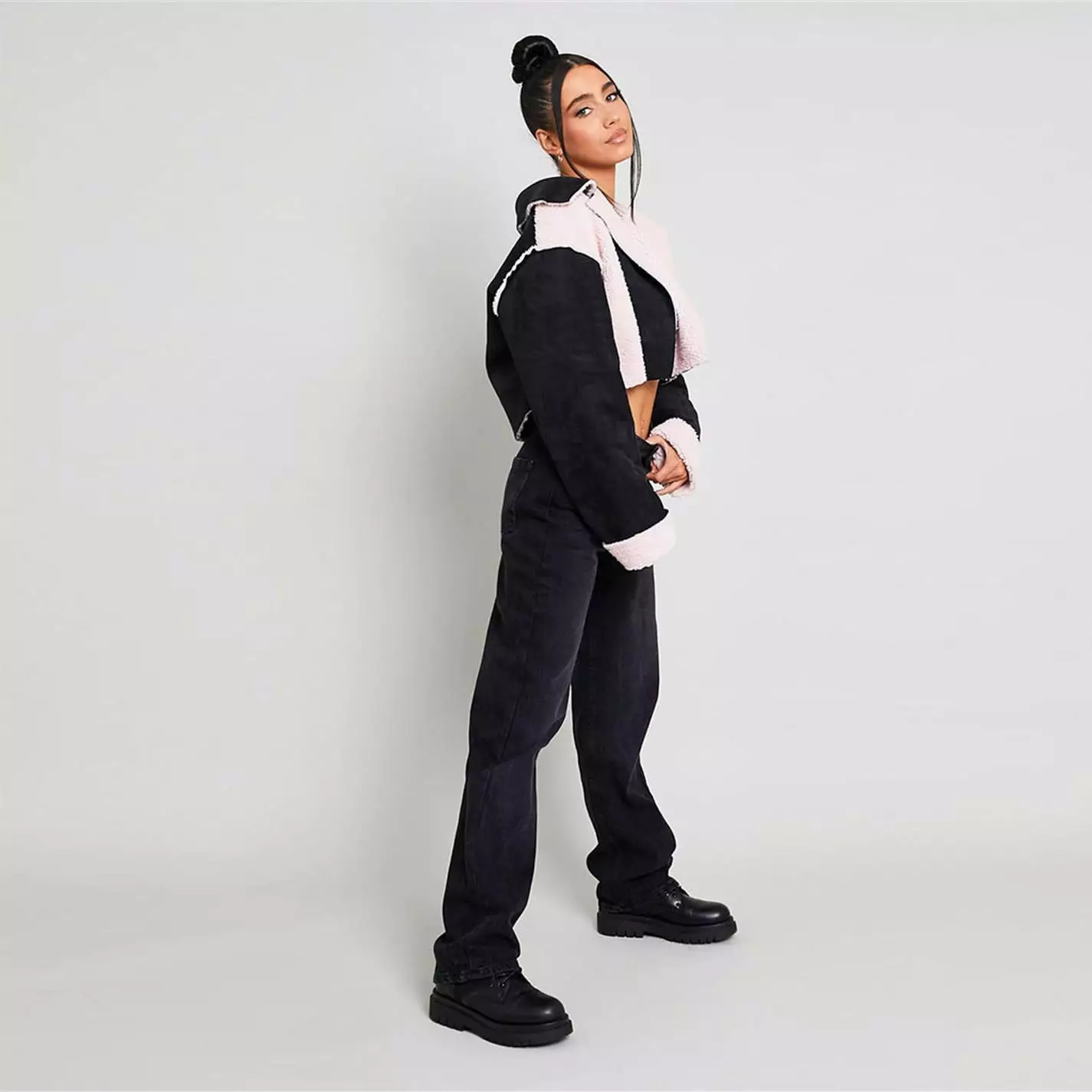 I Saw It First Super Cropped Shearling Suede Aviator Jacket