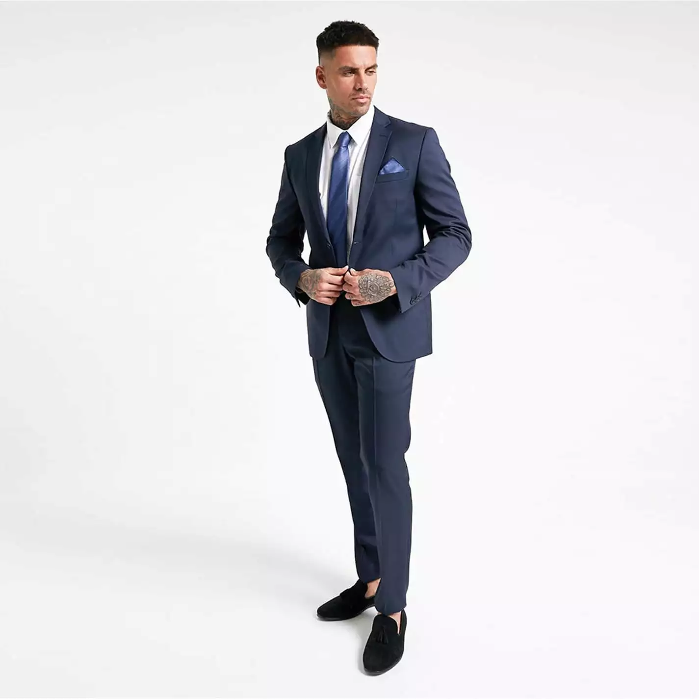Model wears a M/40 and his height is 6’0
