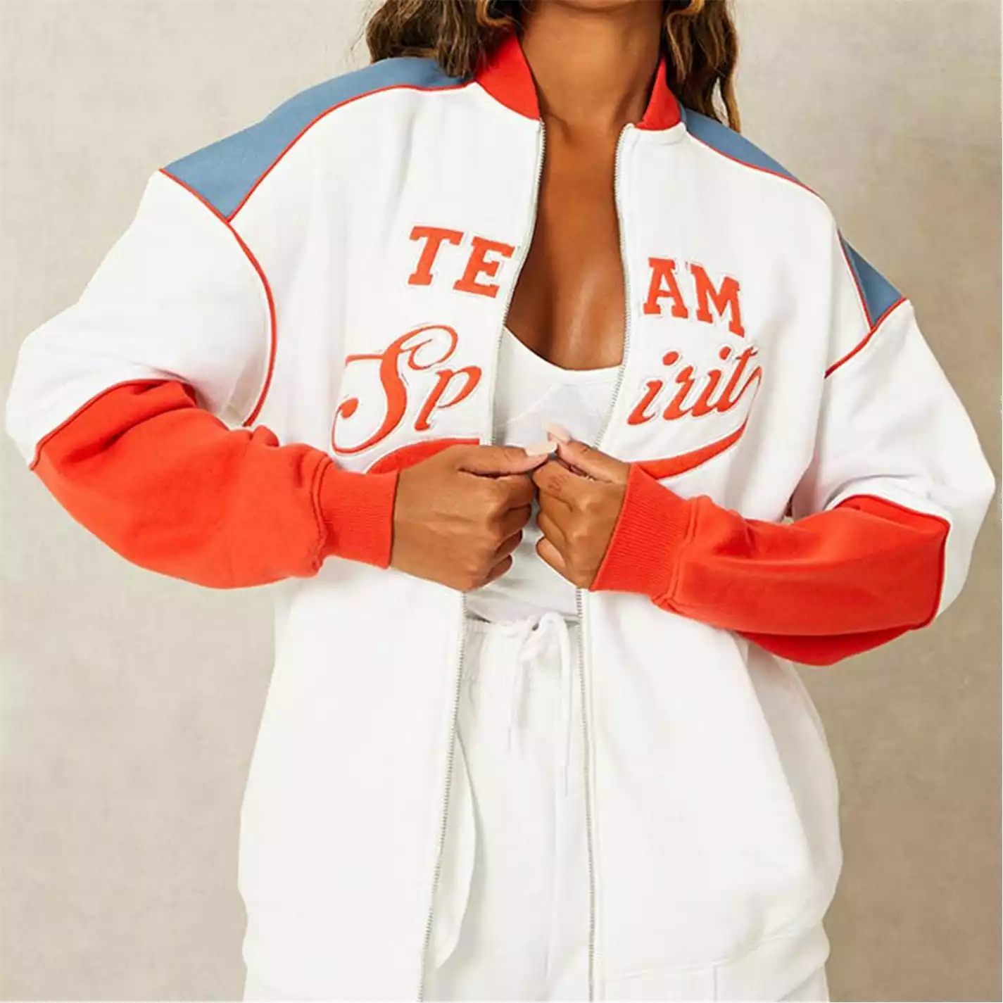 I Saw It First Team Spirit Embroidered Heavyweight Fleeceback Varsity Jacket