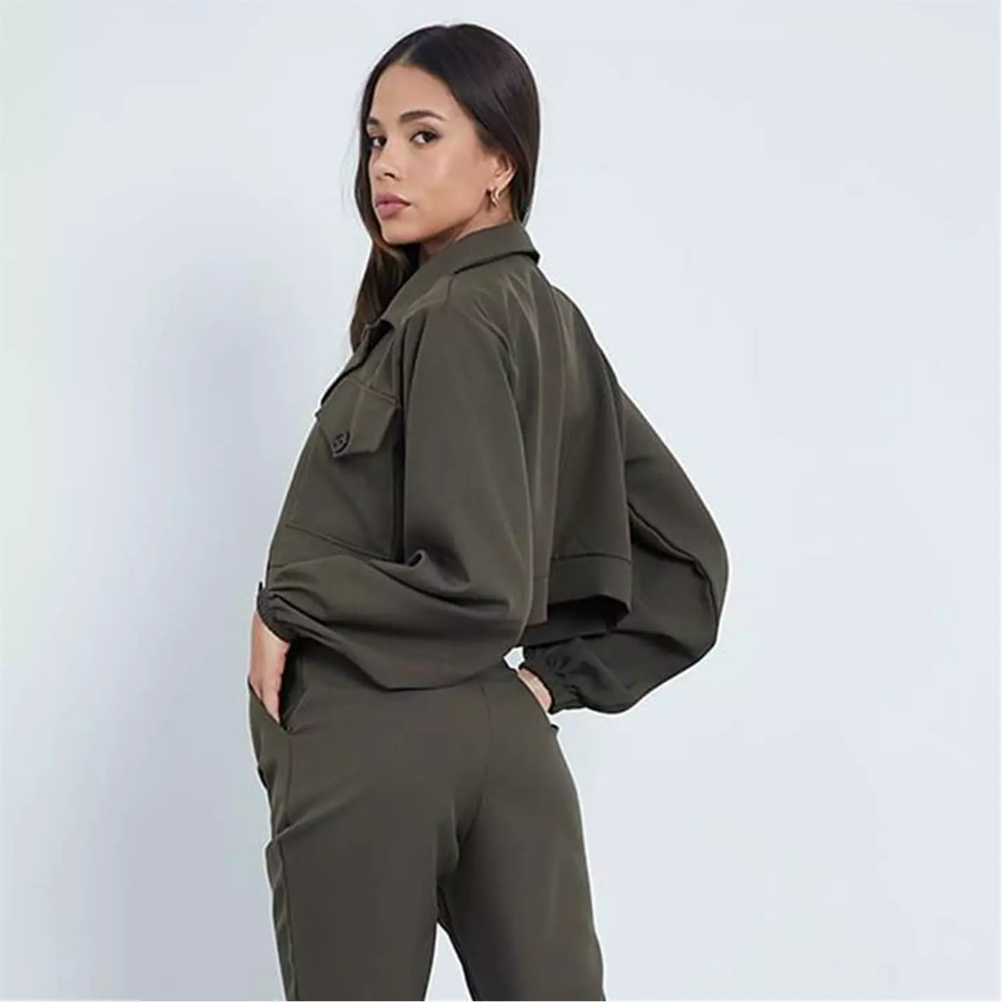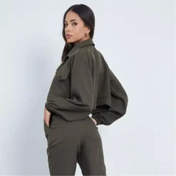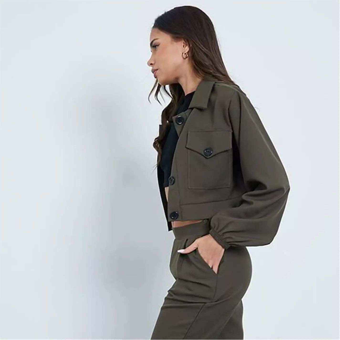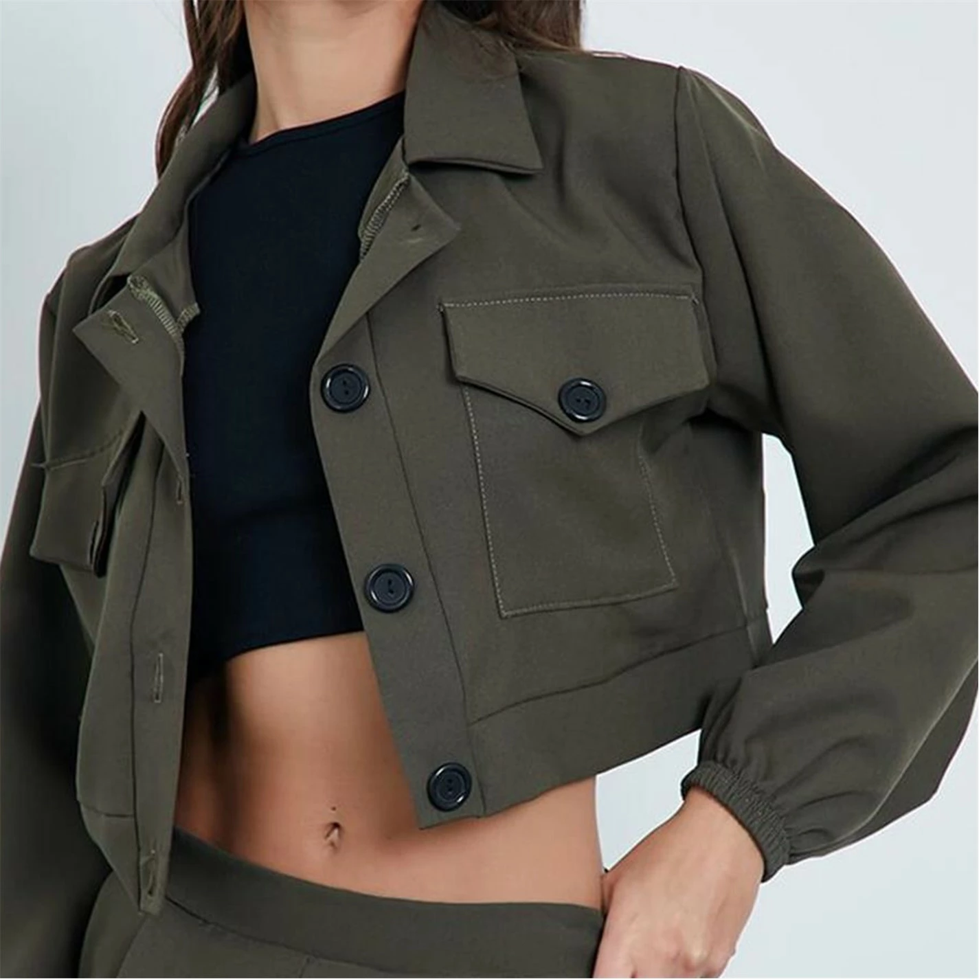 jacket in a woven finish, featuring utility style pockets and button up fastening.