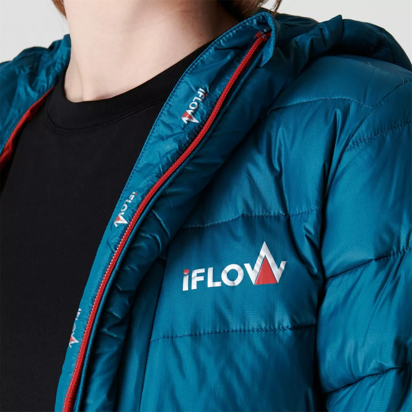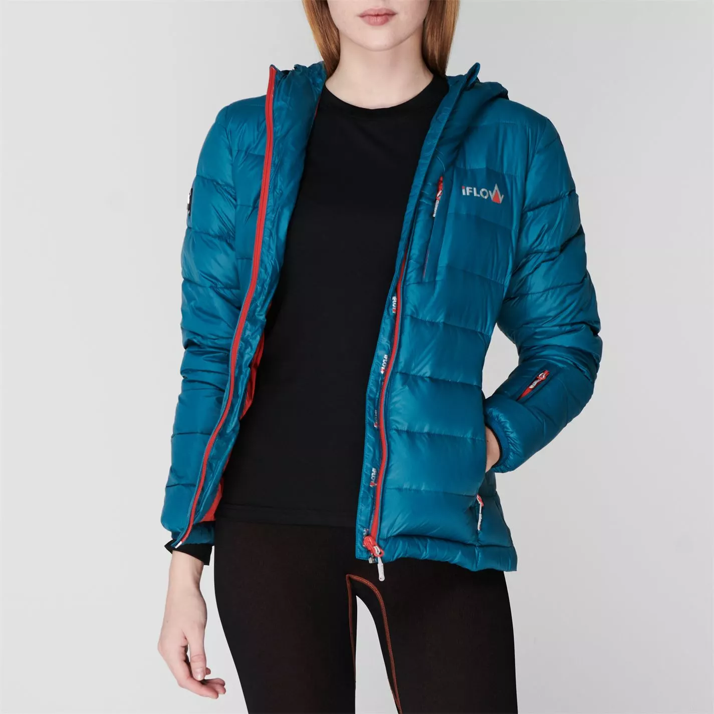 The iFlow Peak Mountain Jacket has a full zip fastening, long sleeves with elasticated cuffs, a toggle adjustable hem and multiple zip pockets. It includes a down and feather filling for lightweight insulation plus a water repellent, windproof outer for good protection against the elements. Finished with iFlow branding.