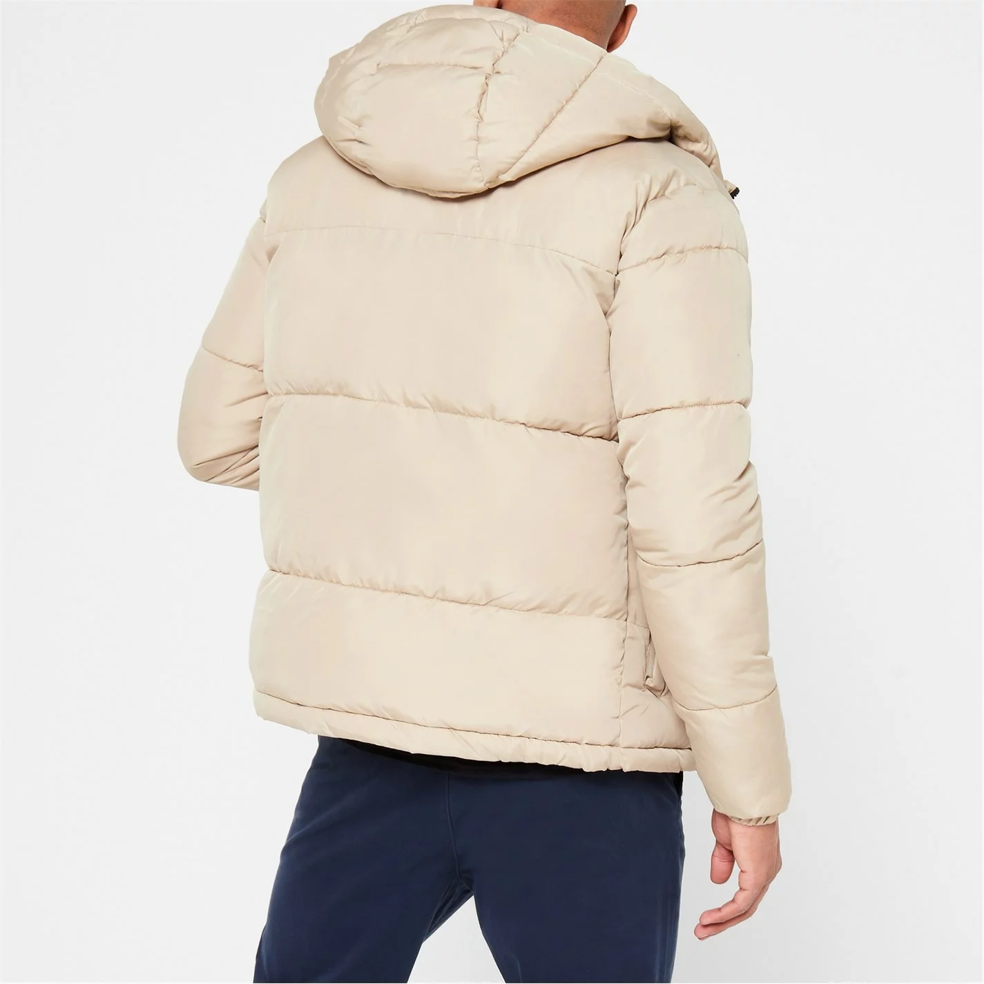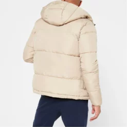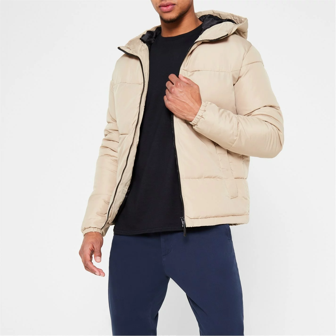 Perfect for winter, this minimal jacket has been crafted from a polyester fabrication filled with a lightweight padding to give a puffer silhouette for added warmth and comfort. With a fixed hood for extra protection, this coat offers a full zip fastening, elasticated trims and two pockets for ample storage while the staple black colourway gives this look a casual feel.