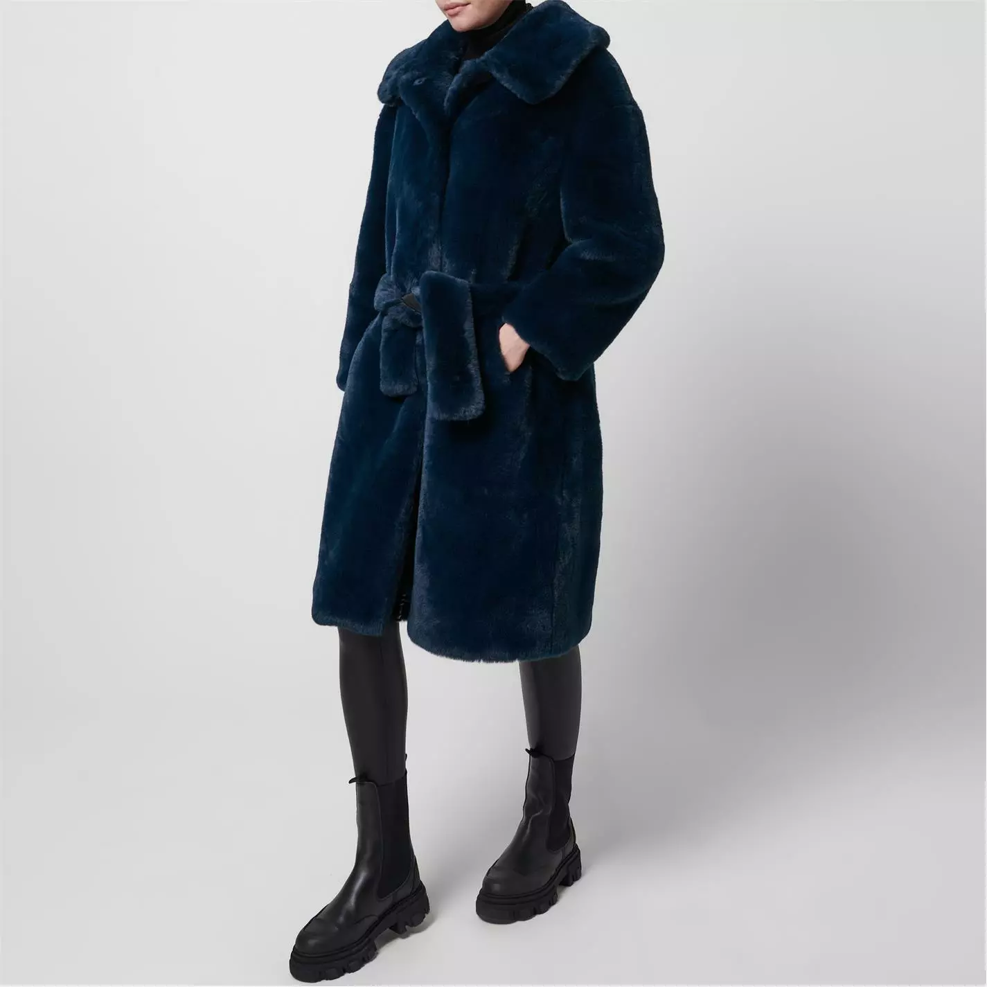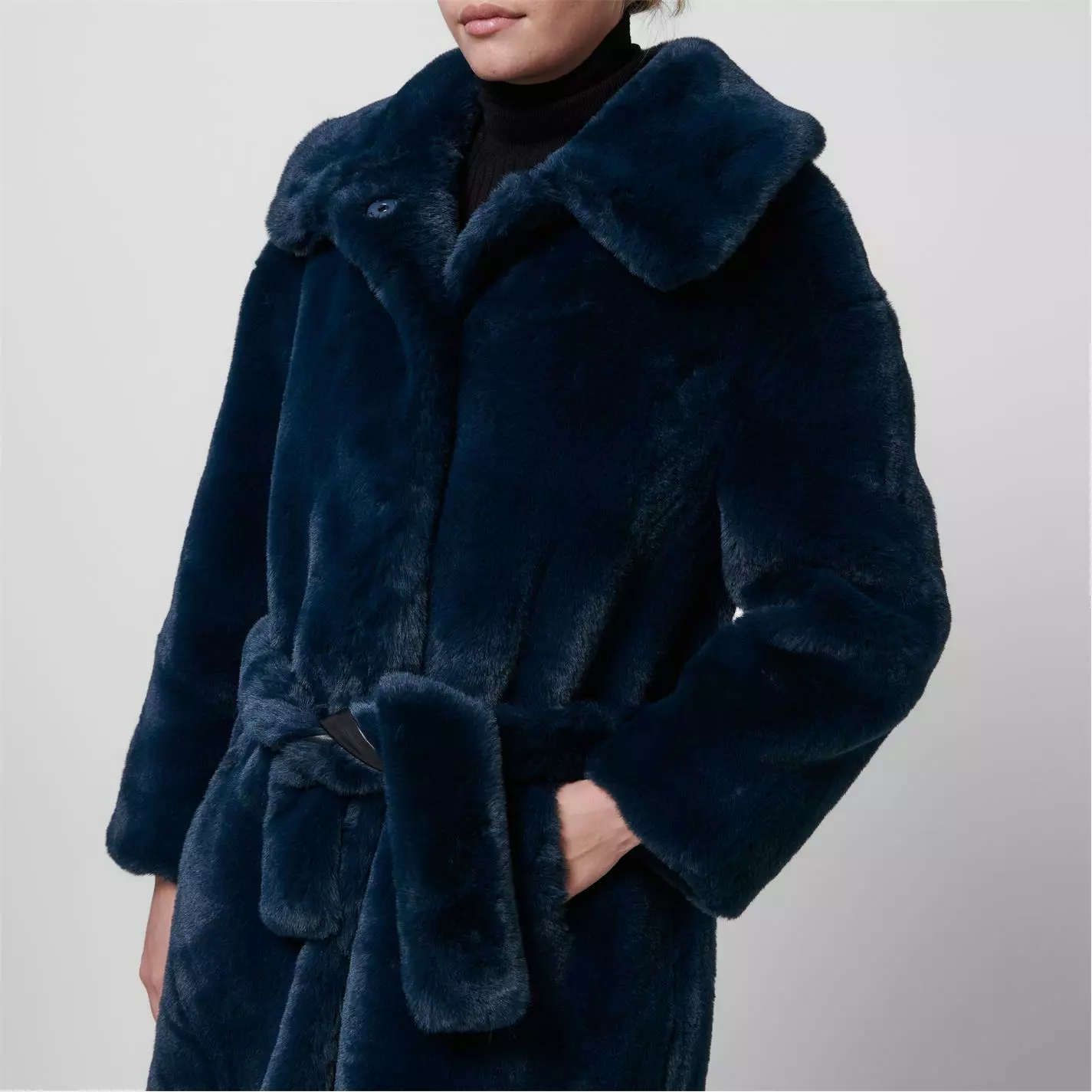 Update your seasonal outerwear with the Katrina Jacket from jakke. Made from super soft faux fur, this coat is designed with an exaggerated collar and coordinating belt to define your figure. Cut in a long length with twin hand pockets, this jacket is finished with a concealed popper fastening.