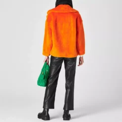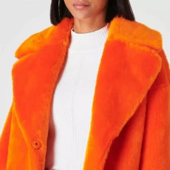 Add a vibrant hue to a timeless silhouette with the Rita Boxy Jacket from jakke. Made from a soft faux fur, this coat offers an oversized lapel collar and dropped shoulders to create a boxy shape. With a concealed popper fastening and twin pockets, this coat is finished in a vibrant orange block colour.