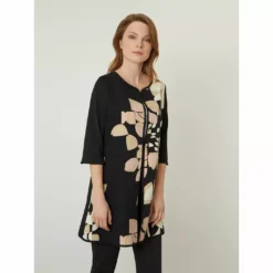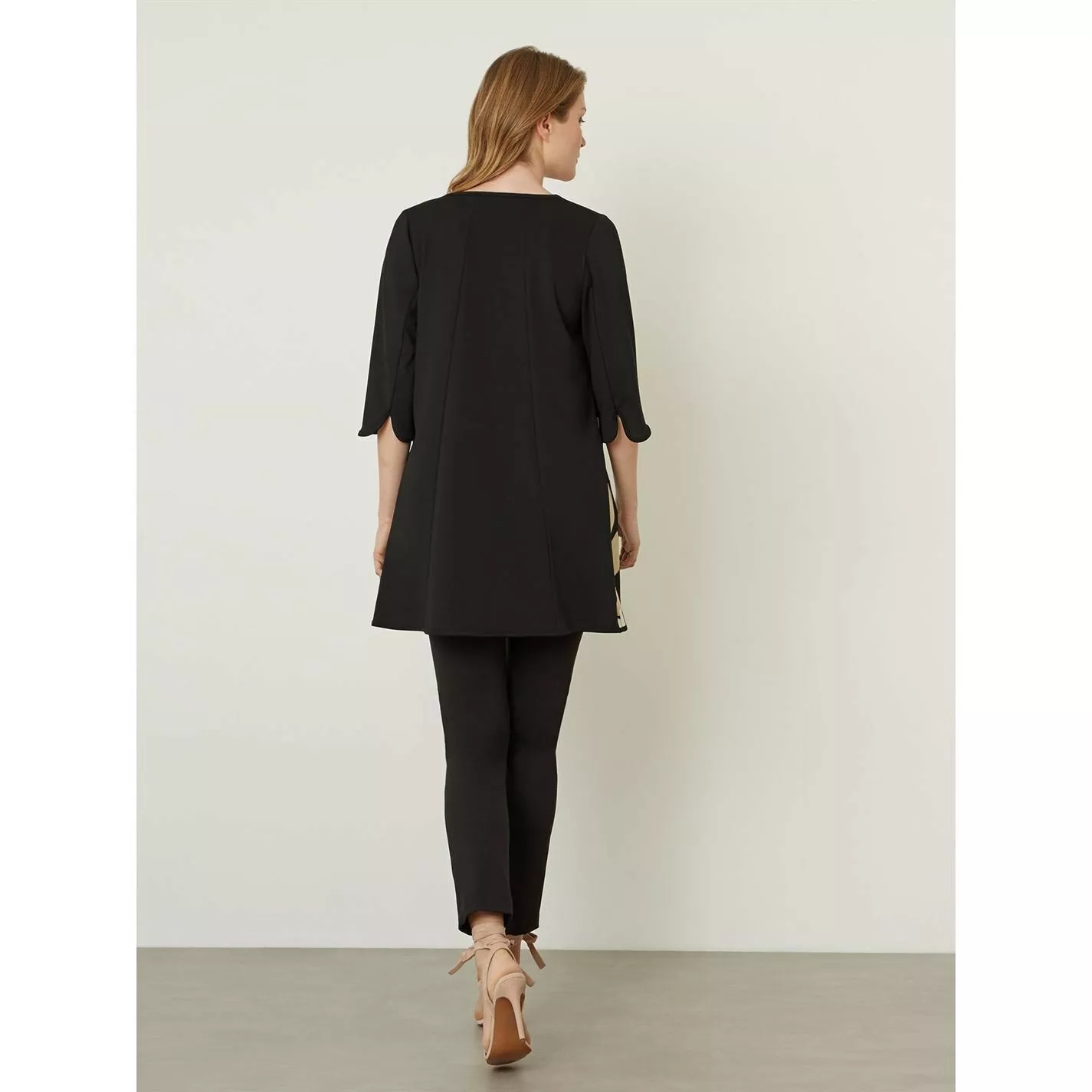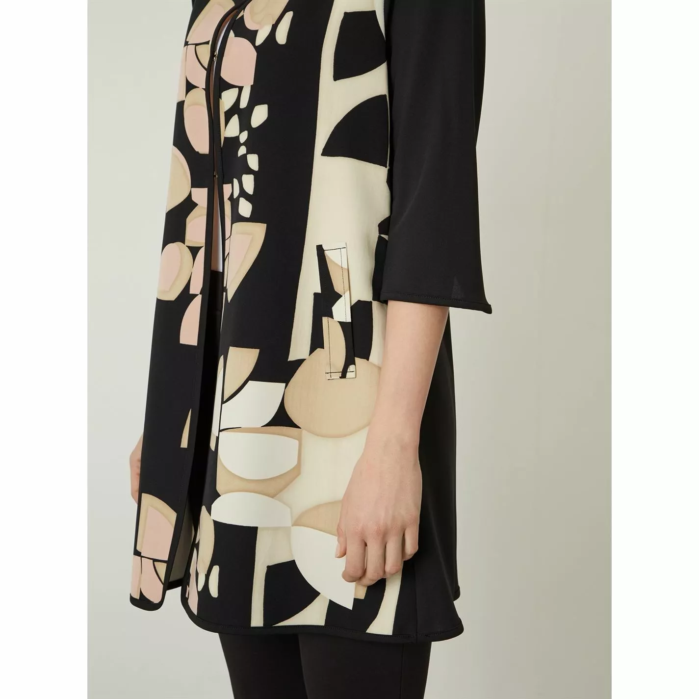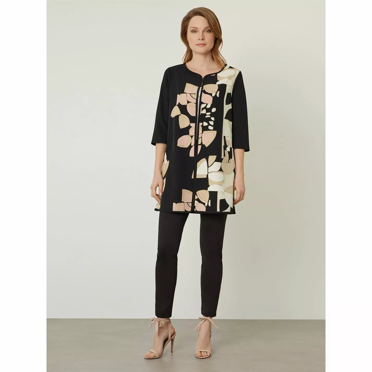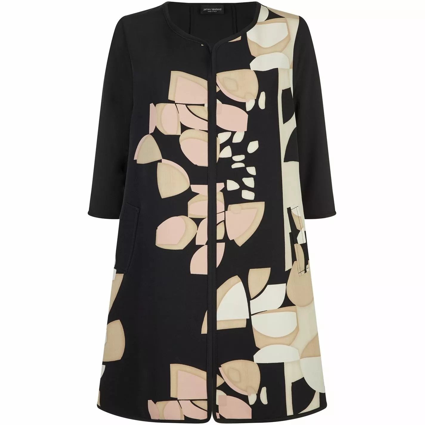 A versatile jacket, perfect for both that upcoming special occasion or as a stylish workwear piece. Predominantly black with a pastel abstract placement print at the front and 3/4 length sleeves.