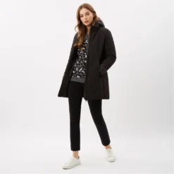 Featuring a structured front fabrication and ribbed detail to the back and cuff, this is the perfectly warm chic puffer jacket to wear for all occasions. Finished with concealed side pockets, high neck and zip fastening.