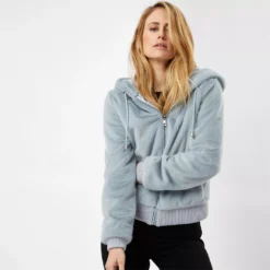 Crafted in super soft faux fur, featuring a hood, side pockets and front zip fastening, this is the perfect transitional jacket to wear with jeans and trainers for a cool, chic off duty look.