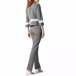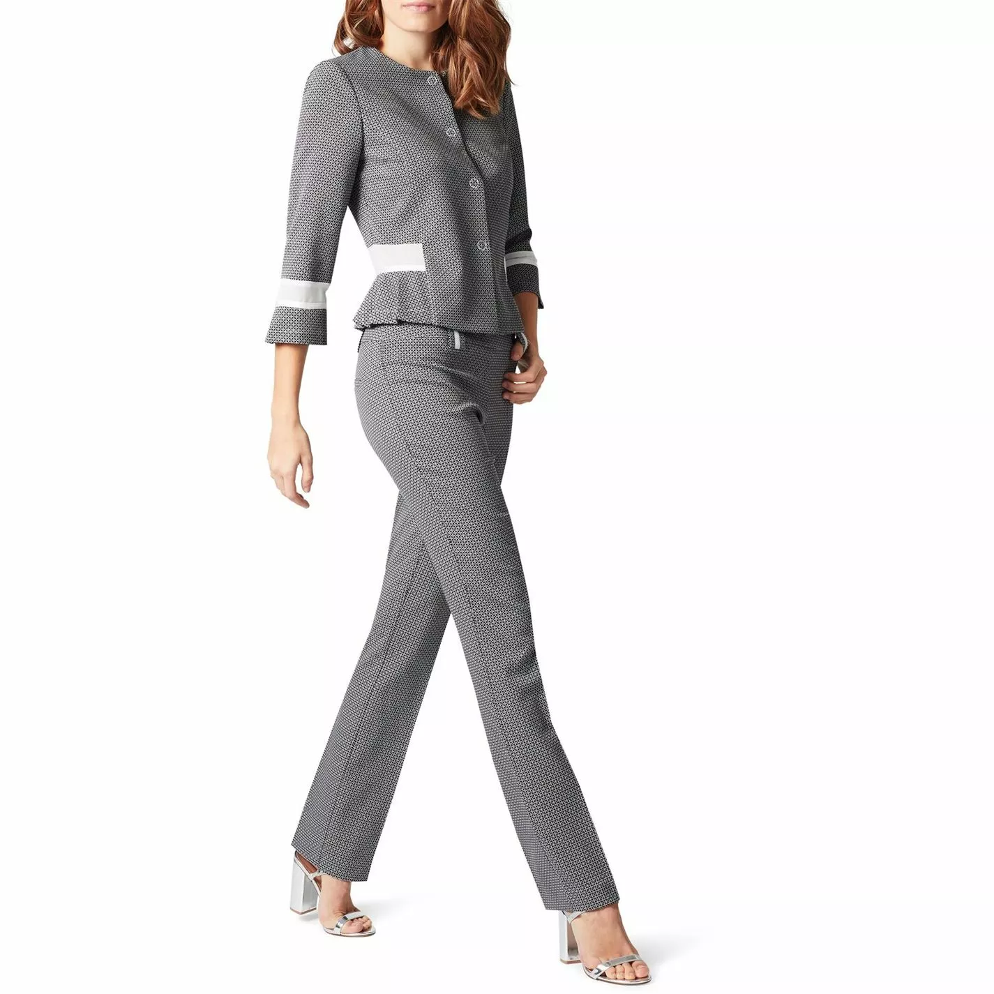 Tailored jacket in a jacquard print with pleats at the side and sheer panels around the waist and at the cuffs. Matching trousers to complete suit.