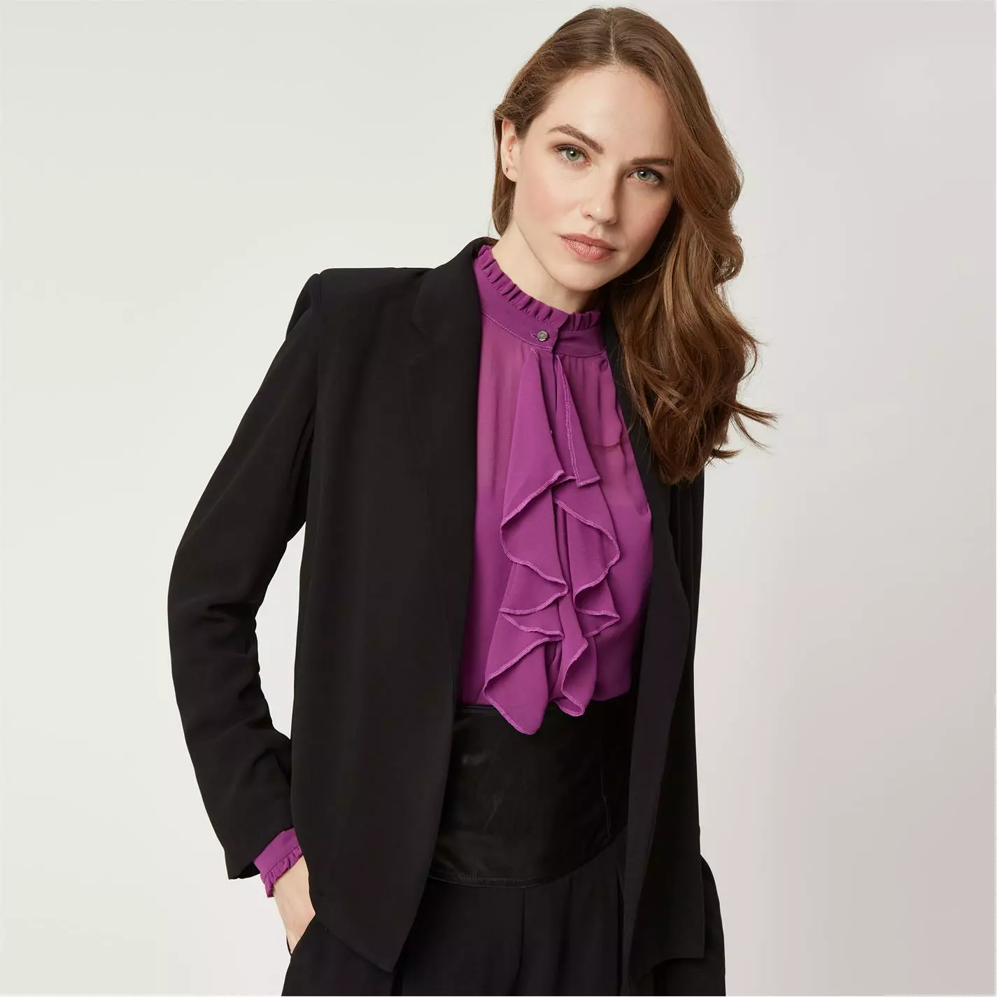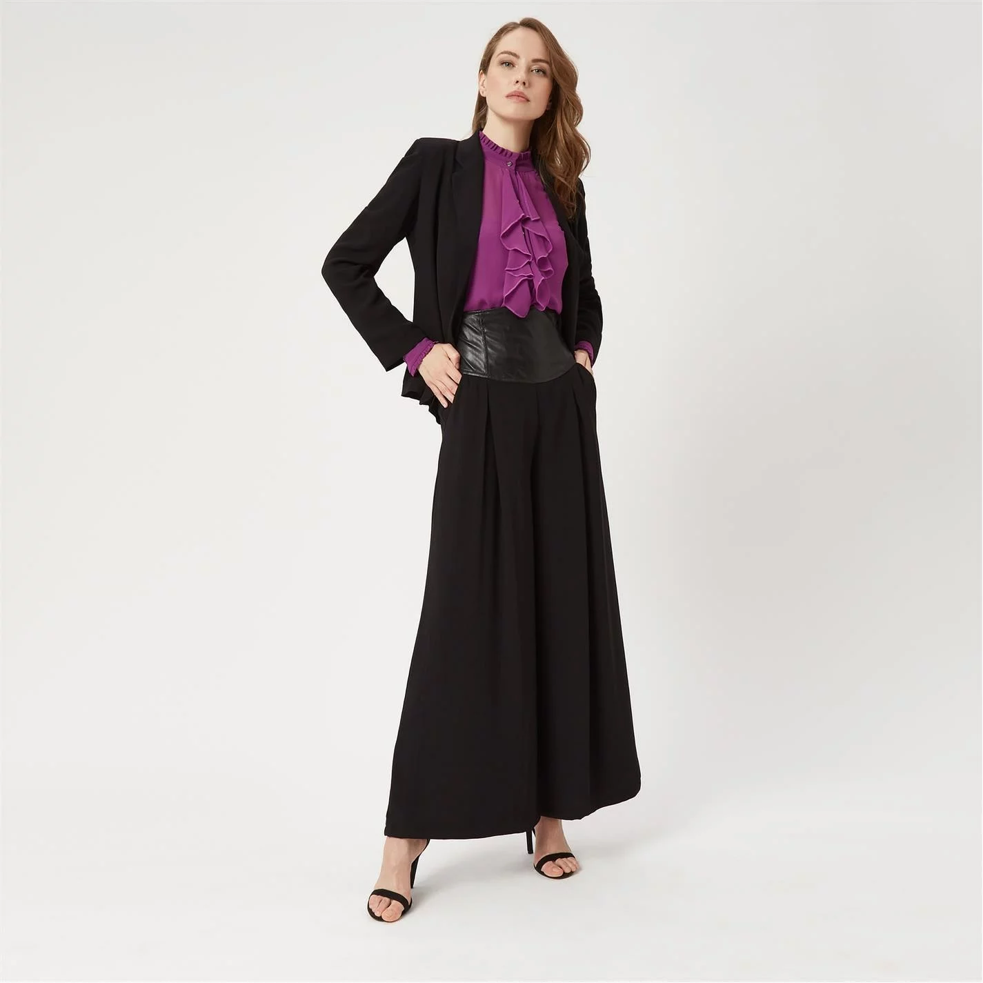 Cut to a relaxed silhouette this blazer jacket features a satin internal trim finish, collar and long sleeves. Pair with the relaxed wide leg trousers to complete the look.