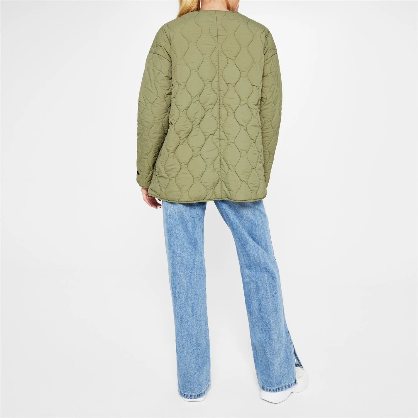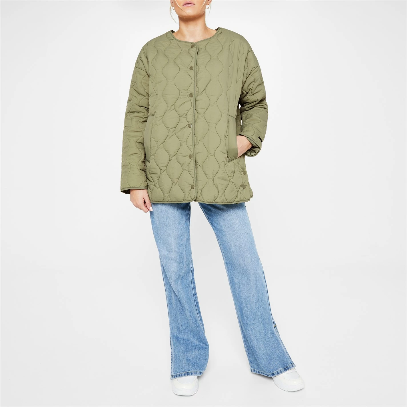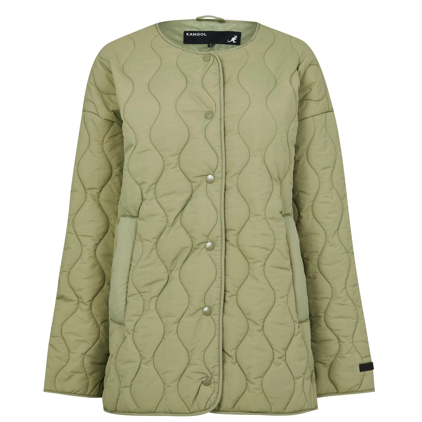 This Kangol Quilted Jacket is perfect for your layered collection. Crafted in a regular fit from a polyester material, this unique jacket is ideal for keeping warm on those slightly cooler days. Boasting a round collar, full frontal button fastening, long sleeves, elasticated trims, side zip pockets, a buttoned split detailing to the hem and a quilted design throughout, this is then decorated in a solid colouring and finished with the Kangol branding.