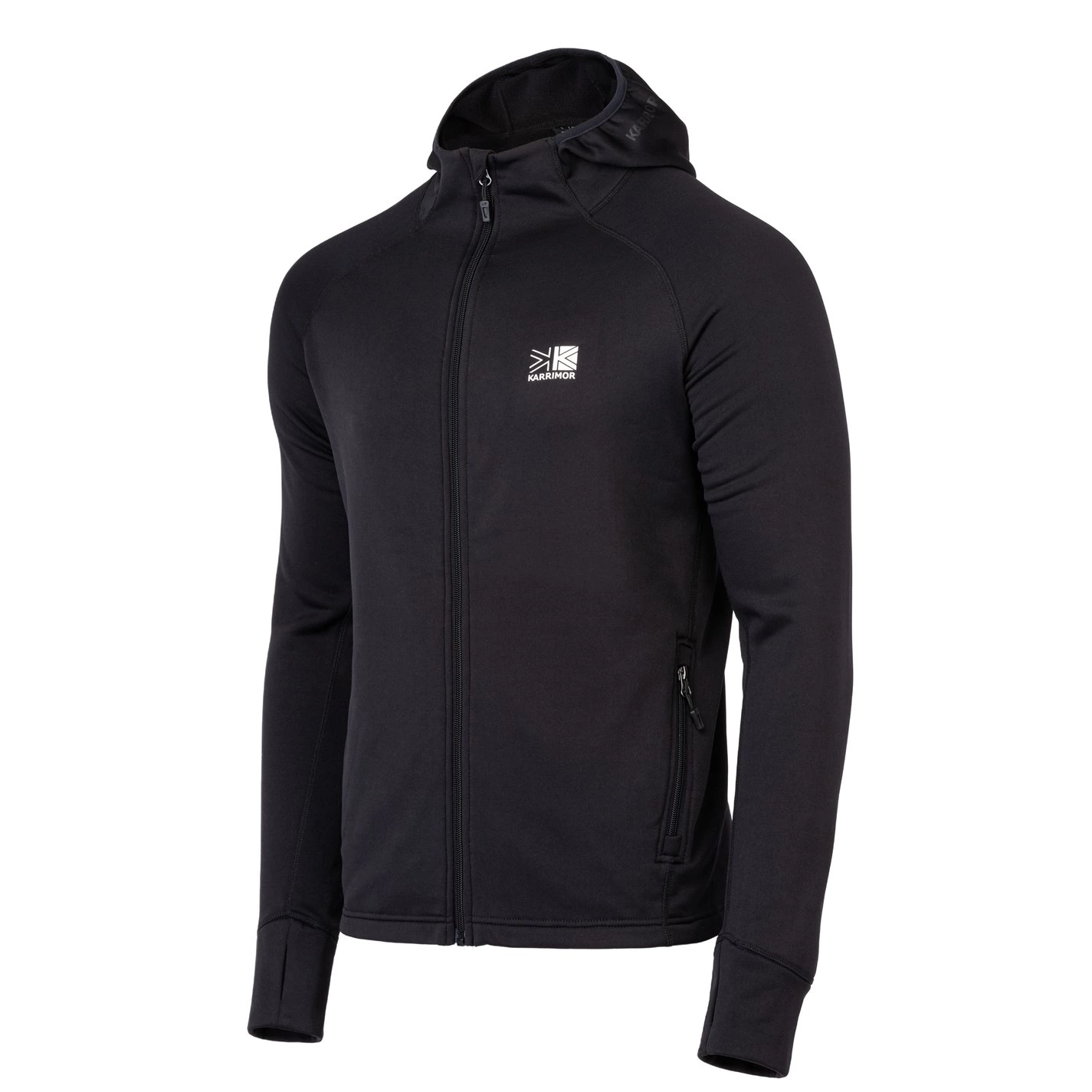 This Karrimor Helix Fleece Jacket is crafted with full zip fastening and long sleeves with thumb holes for a secure fit. It features a hooded neckline plus two zipped hand pockets for a classic look and is a lightweight construction. This jacket is a solid colouring throughout designed with a signature logo and is complete with Karrimor branding.