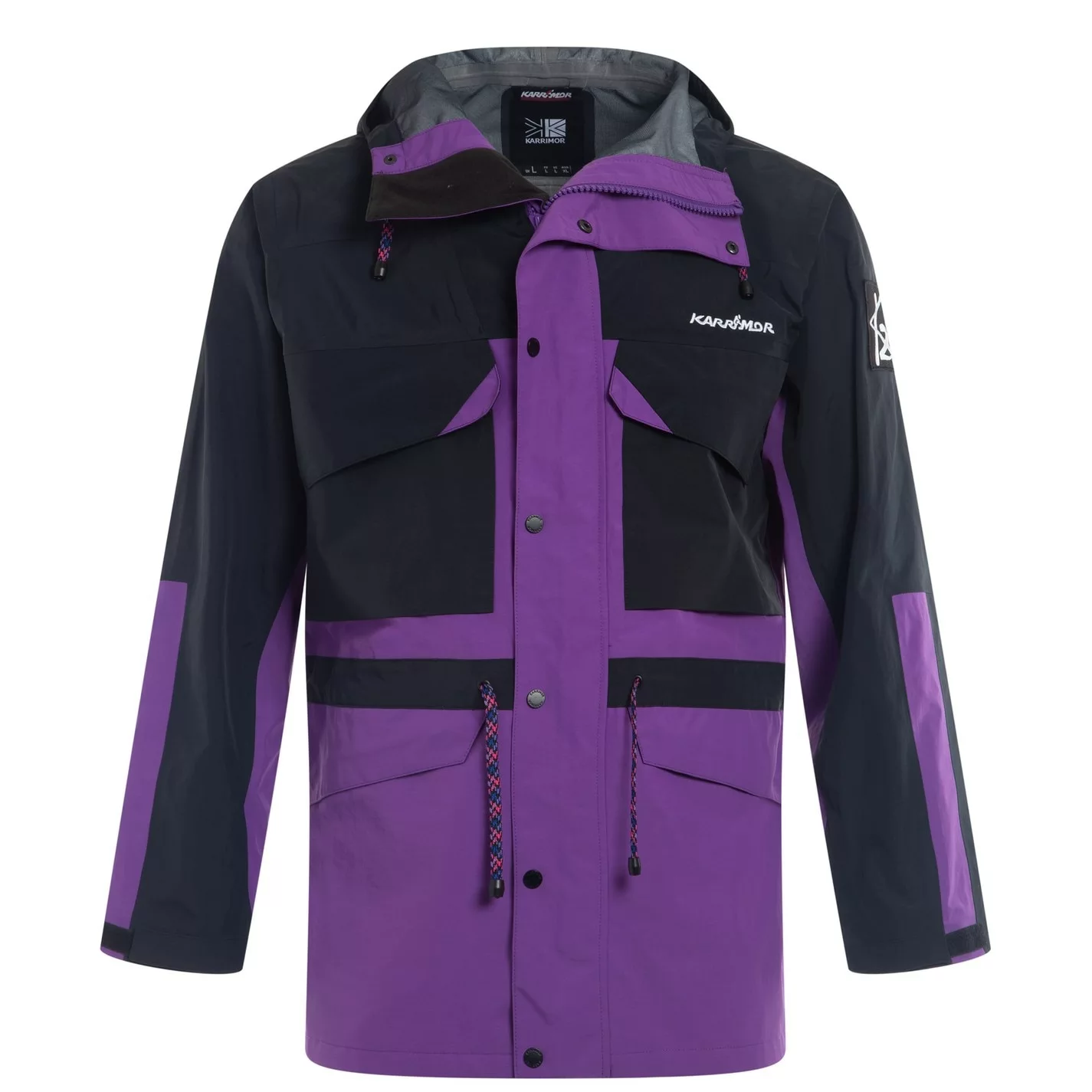 This Karrimor K2 Alpine Jacket is crafted with button lapped full zip fastening and long sleeves for a secure fit. It features four pockets for a classic look and is a lightweight construction. This jacket is a colour block design with a signature logo and is complete with Karrimor branding.