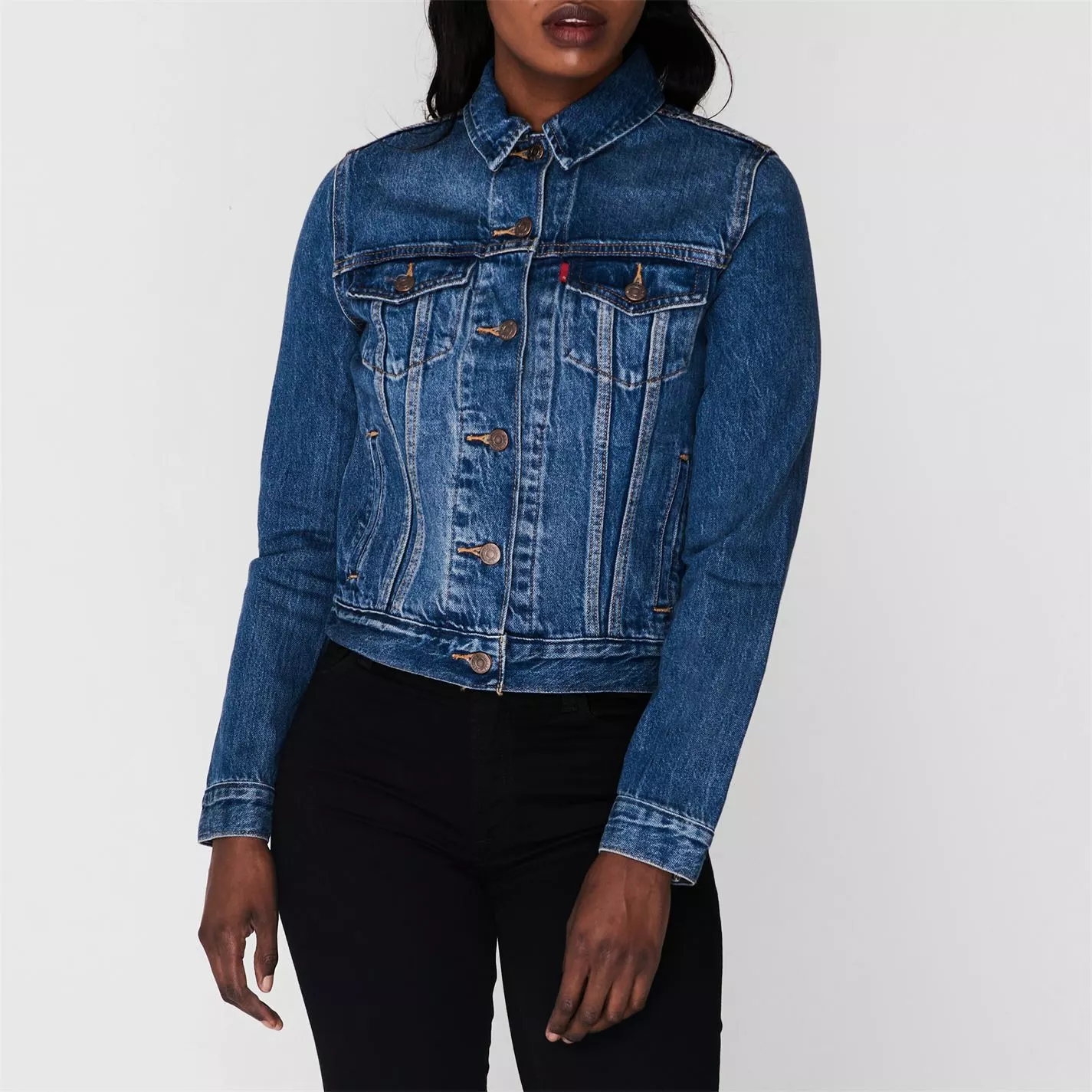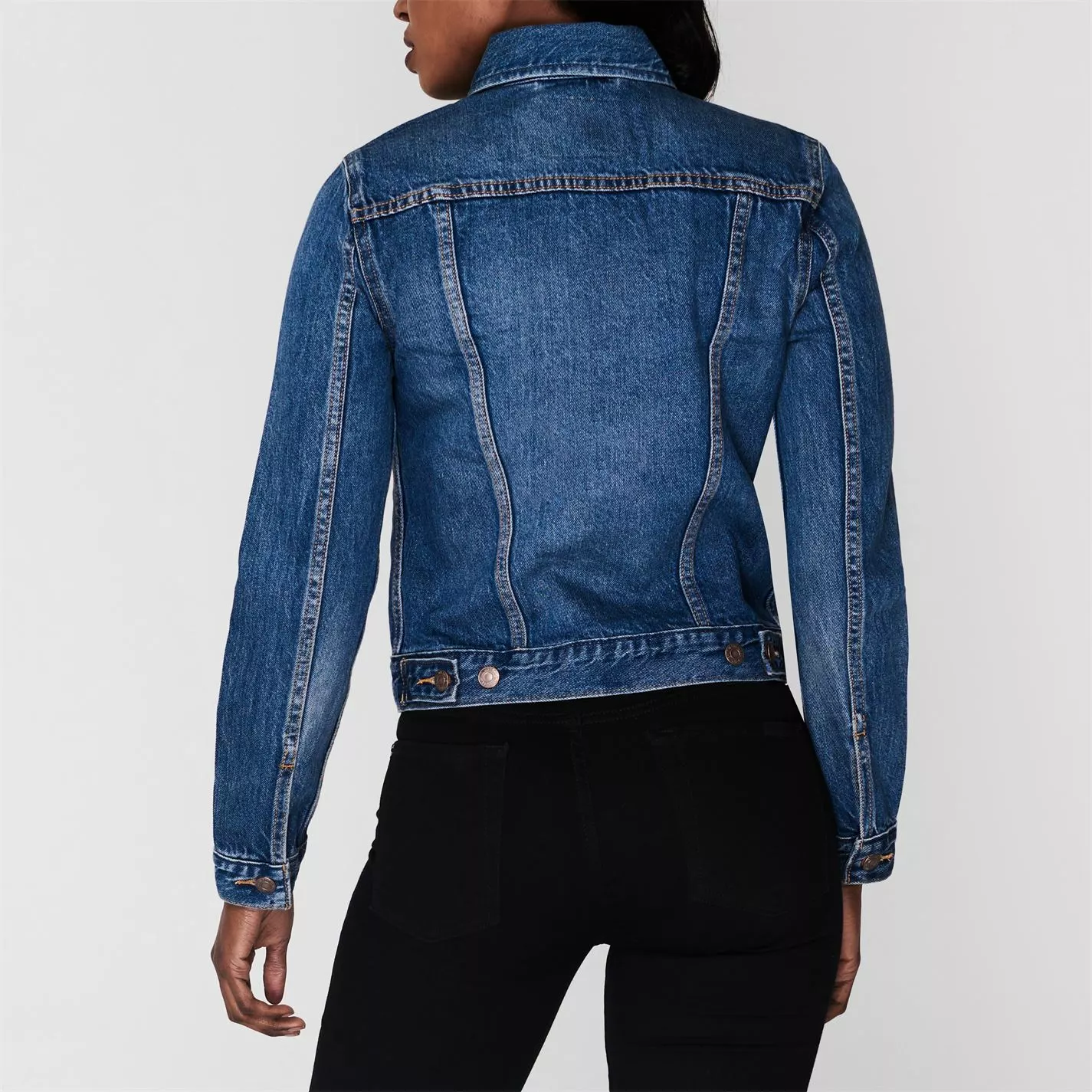 Update your collection with this Levis Ex Boyfriend Trucker Jacket. Crafted with a folded collar and button fastening, it features long sleeves and 4 pockets for a classic look. This jacket is designed with a signature logo and is complete with Levis branding.