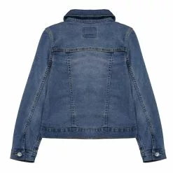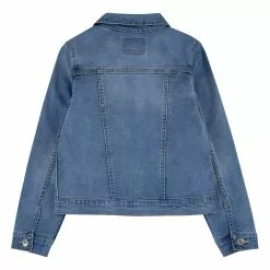 Elevate your little girls outwear with the Denim Trucker Jacket by Levis, crafted from pure cotton for a premium denim finish. Complete with two chest pockets, a press stud fasten and traditional collar for the ultimate look. Signature Levis red tab branding delivers the finishing, designer touch.