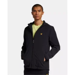 Add this Lyle & Scott Sport Tape Jacket to your outerwear rotation for a lightweight and practical addition. Featuring a full zip through design with an attached hood, this jacket offers additional protection against the elements. The jacket has two zip front pockets, elasticated cuffs and an open hem. On the reverse, the iconic Lyle & Scott tape design runs up the back. The piece is finished with the rubber brand logo stitched to the chest.